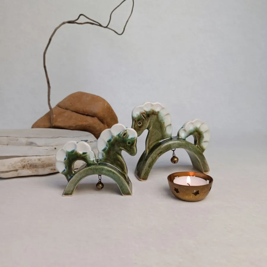 Ці витончені керамічні фігурки — втілення грації та незламності коня. Це ексклюзивний декор, який миттєво привертає погляд і додає художньої глибини будь-якому простору. Кожен коник — це ручний витвір мистецтва, наповнений теплом кераміки та сяйвом глазурі. Коники виконані у стилізованій, арковій формі, що робить їх сучасними, але водночас глибоко символічними, нагадуючи про народні іграшки та обереги. Ідеальний подарунок для вас та ваших близьких.