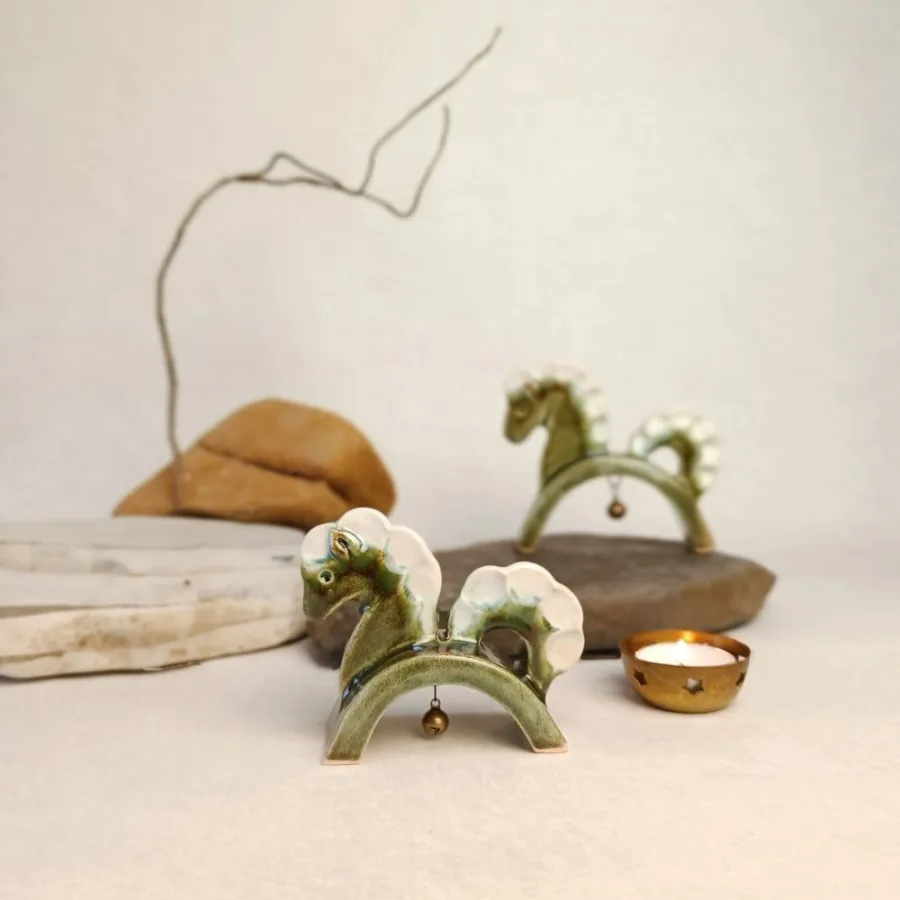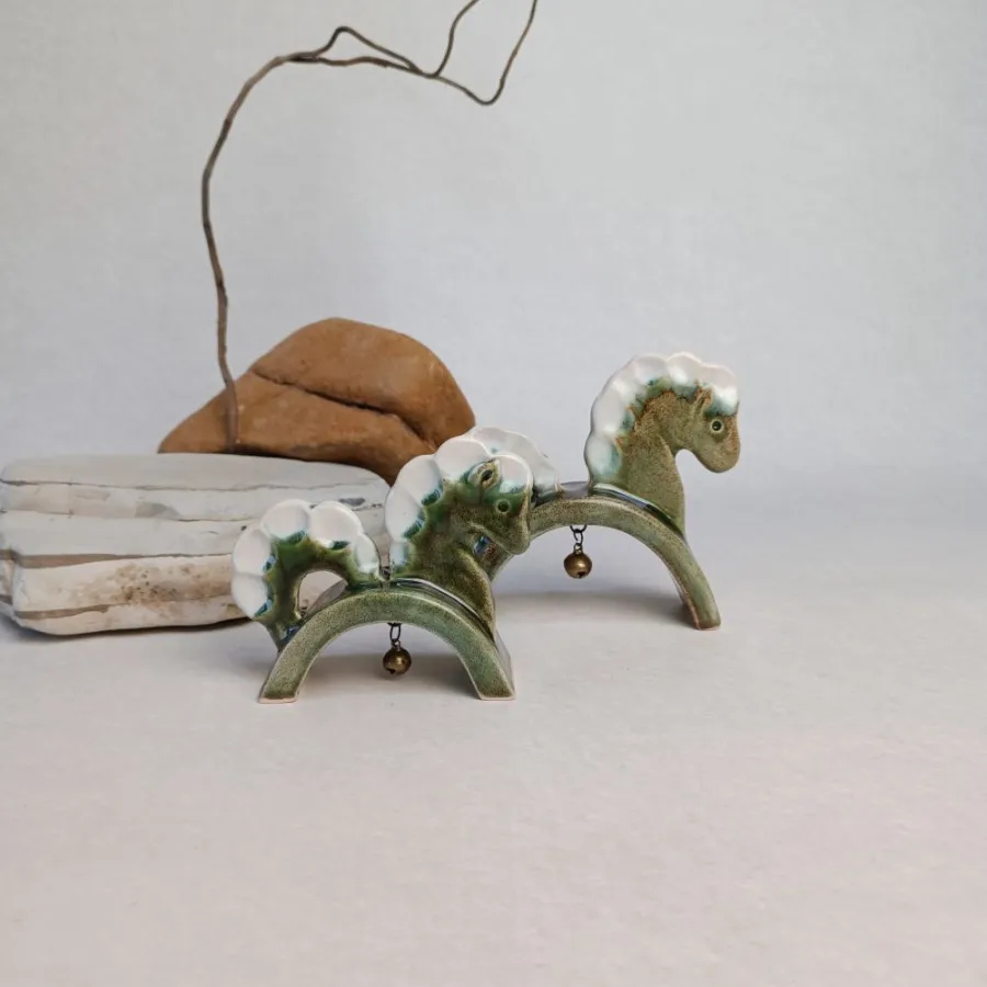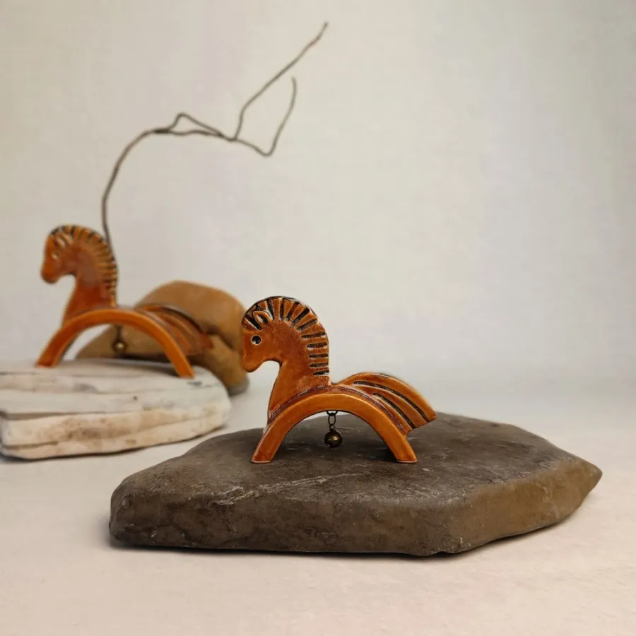 Ці витончені керамічні фігурки — втілення грації та незламності коня. Це ексклюзивний декор, який миттєво привертає погляд і додає художньої глибини будь-якому простору. Кожен коник — це ручний витвір мистецтва, наповнений теплом кераміки та сяйвом глазурі. Коники виконані у стилізованій, арковій формі, що робить їх сучасними, але водночас глибоко символічними, нагадуючи про народні іграшки та обереги. Ідеальний подарунок для вас та ваших близьких.