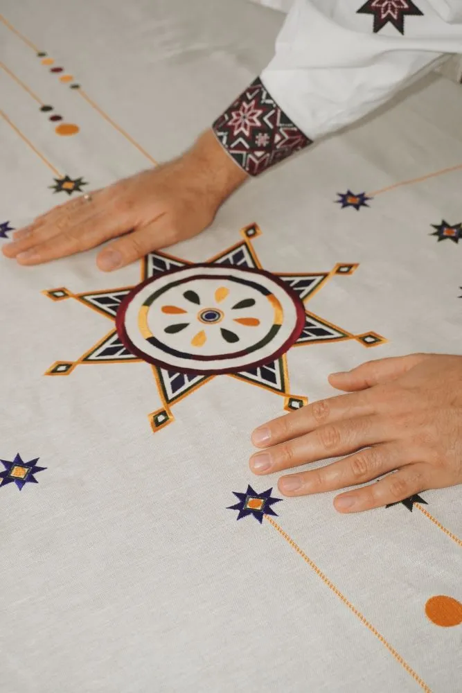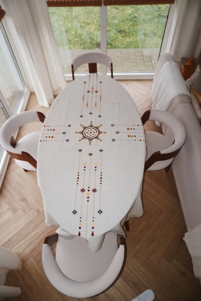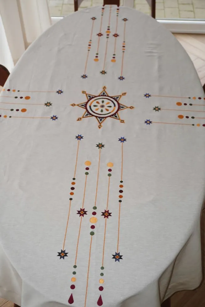 Ця скатертина задумана бути головним акцентом святкового столу — щоб у вашому домі панувала атмосфера тепла, урочистості й нашої української традиції, яку ми так цінуємо й бережемо.