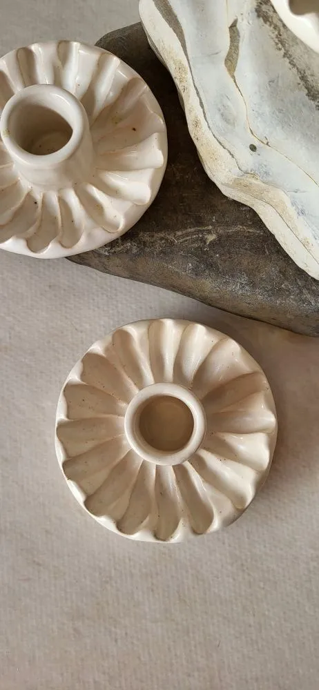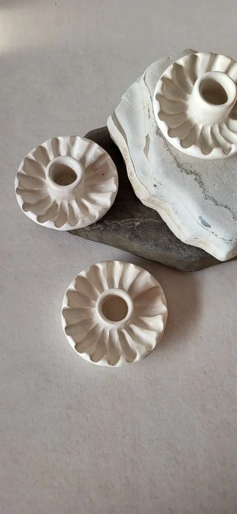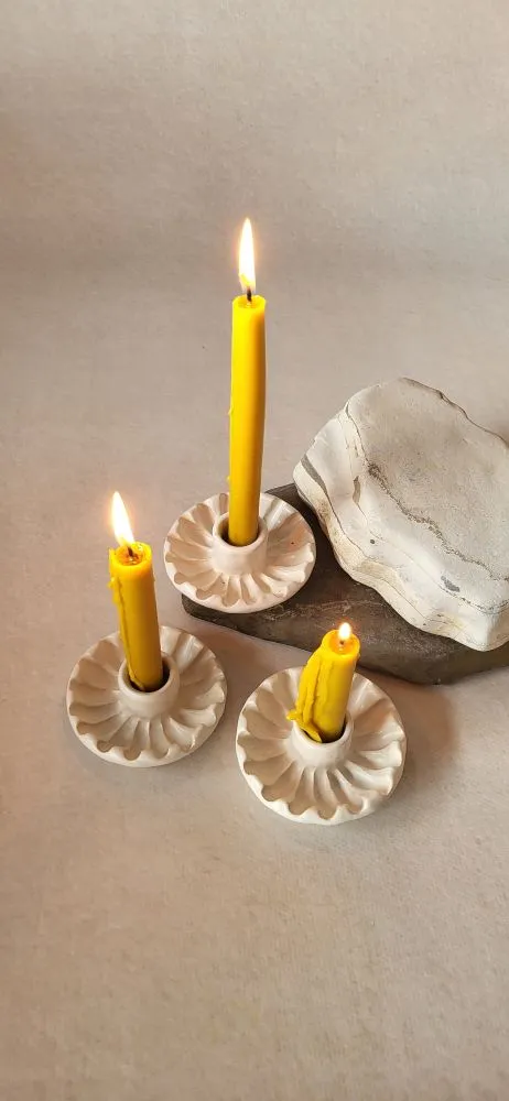 Стильні свічники для класичних свічок із глибоким декором. Продумана конструкція з широкими бортиками надійно захищає поверхню столу від крапель воску, поєднуючи практичність із витонченим дизайном.