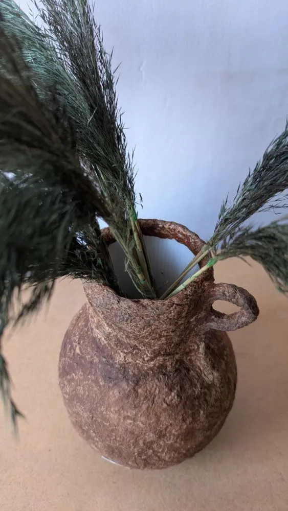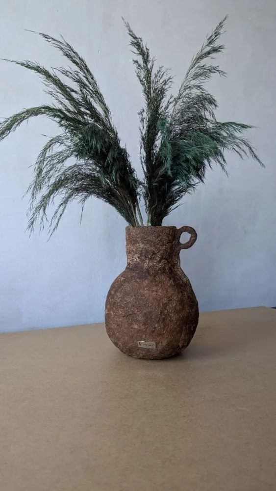 Вази виготовлені із целюлози за технікою пап'є-маше, в них збережена структура та фактура після висихання матеріалу, це надає їм особливого характеру та неповторності у виконанні. Кожна ваза в єдиному екземплярі, тому ви матимете можливість отримати ексклюзивний виріб який прикрашатиме та доповнюватиме ваш простір. Целюлоза після висихання дуже міцний матеріал у порівнянні з керамічними виробами. Всередині кожної вази є скляна або пластикова ємність, що дозволяє використання виробу для живих квітів, створення композицій з різних рослин та декоративних елементів.