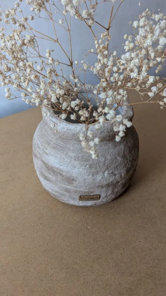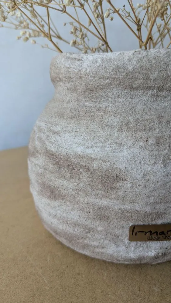 Вази виготовлені із целюлози за технікою пап'є-маше, в них збережена структура та фактура після висихання матеріалу, це надає їм особливого характеру та неповторності у виконанні. Кожна ваза в єдиному екземплярі, тому ви матимете можливість отримати ексклюзивний виріб який прикрашатиме та доповнюватиме ваш простір. Целюлоза після висихання дуже міцний матеріал у порівнянні з керамічними виробами. Всередині кожної вази є скляна або пластикова ємність, що дозволяє використання виробу для живих квітів, створення композицій з різних рослин та декоративних елементів.