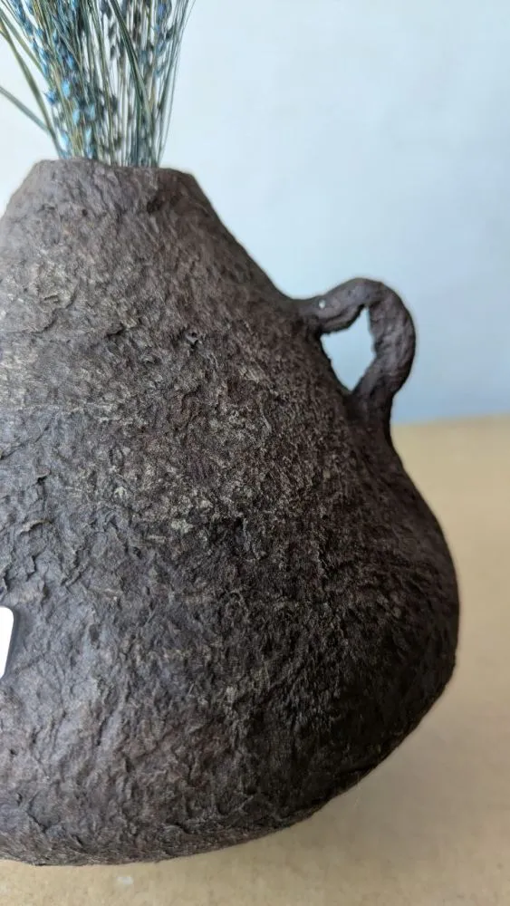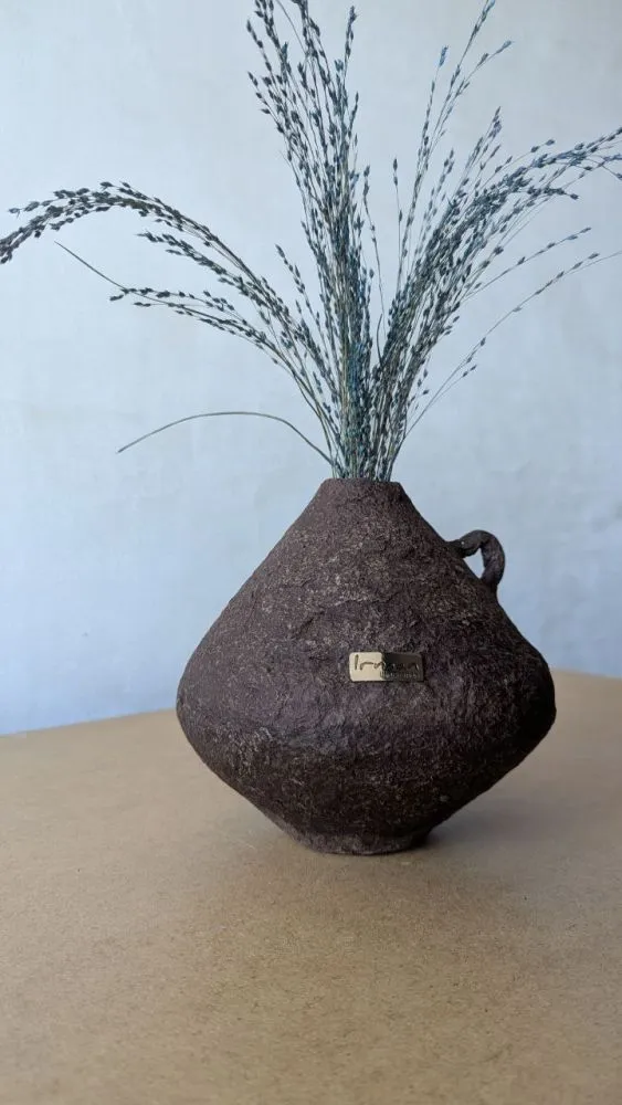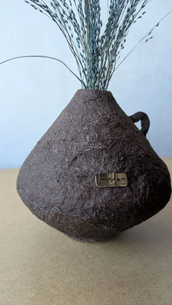 Вази виготовлені із целюлози за технікою пап'є-маше, в них збережена структура та фактура після висихання матеріалу, це надає їм особливого характеру та неповторності у виконанні. Кожна ваза в єдиному екземплярі, тому ви матимете можливість отримати ексклюзивний виріб який прикрашатиме та доповнюватиме ваш простір. Целюлоза після висихання дуже міцний матеріал у порівнянні з керамічними виробами. Всередині кожної вази є скляна або пластикова ємність, що дозволяє використання виробу для живих квітів, створення композицій з різних рослин та декоративних елементів.