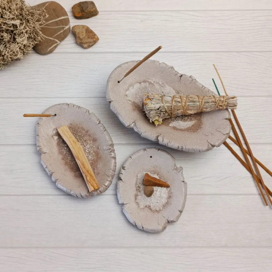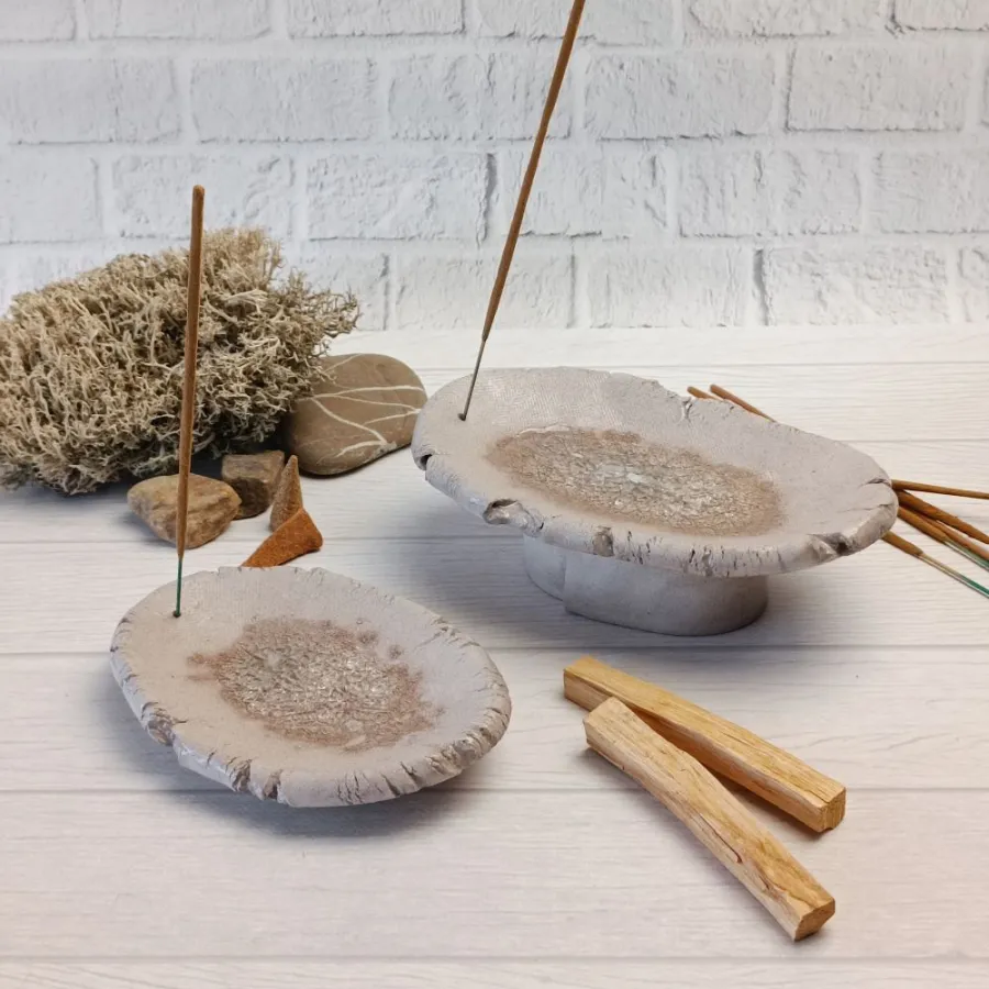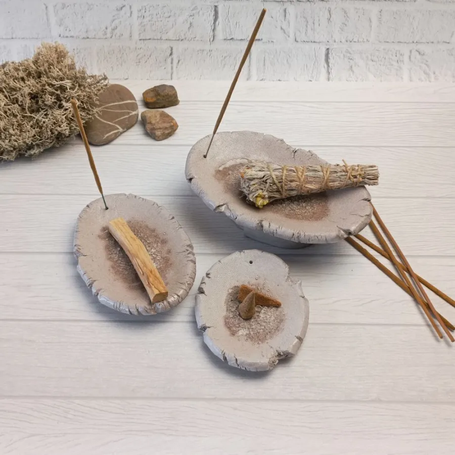 Ці керамічні підставки створені для тих, хто цінує недосконалу красу. Нерівні краї та шорстка поверхня дарують неймовірні тактильні відчуття, а функціональний дизайн робить їх незамінними для ваших духовних практик.