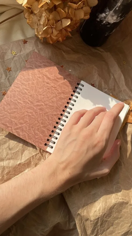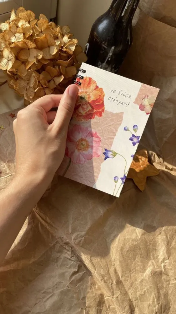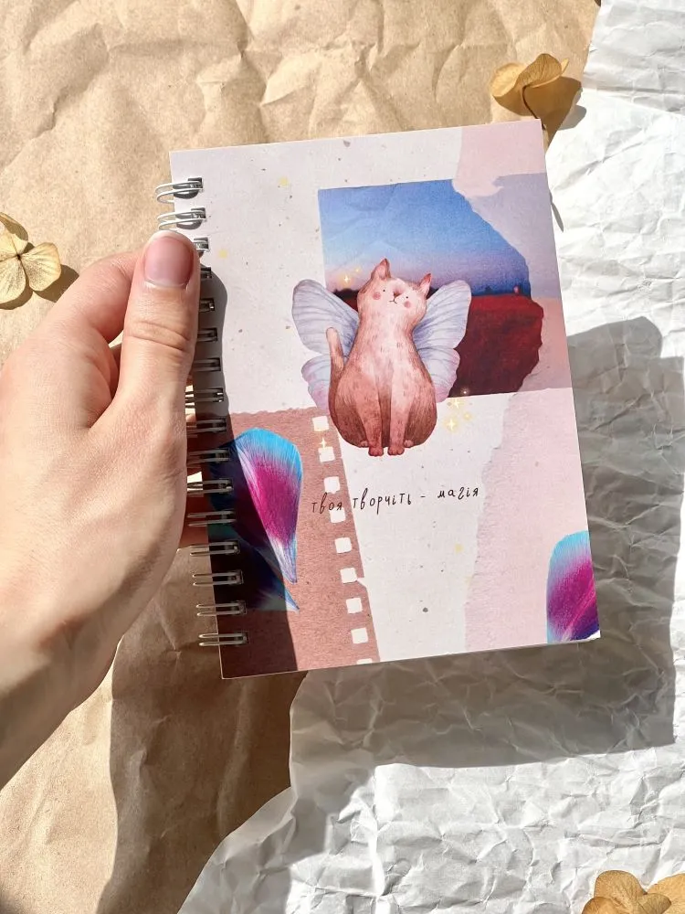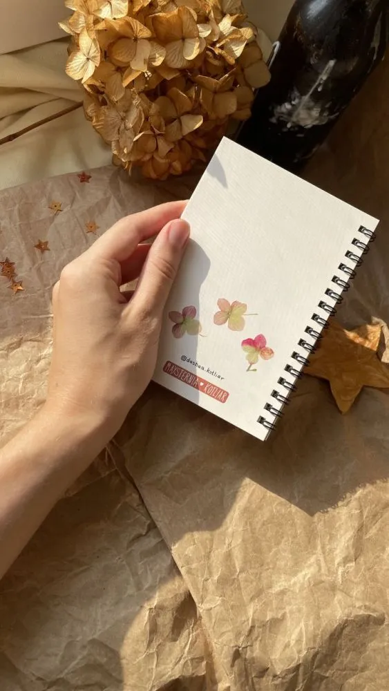 Блокнот формату A6 на пружинці з кремовими сторінками, 50 аркушів. Компактний і завжди під рукою. Для швидких замальовок і спійманих моментів.