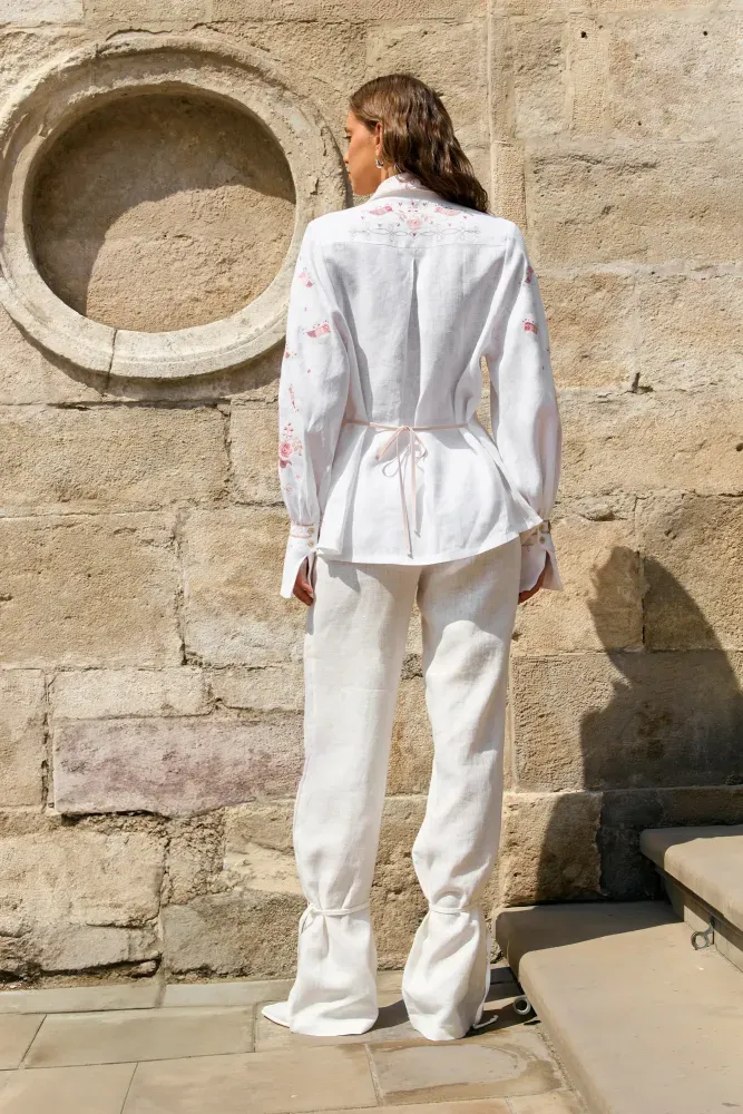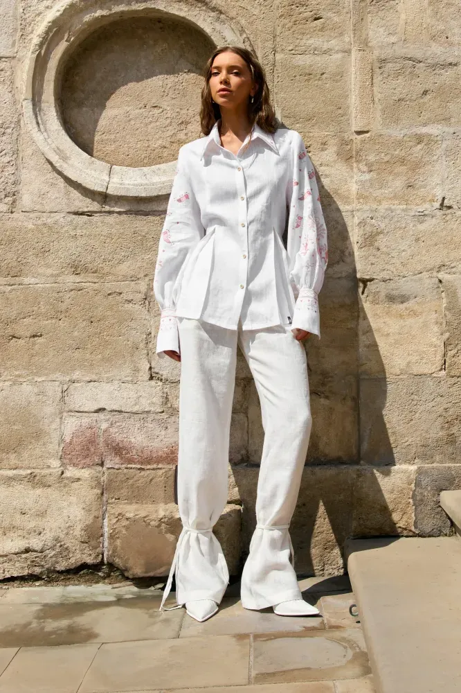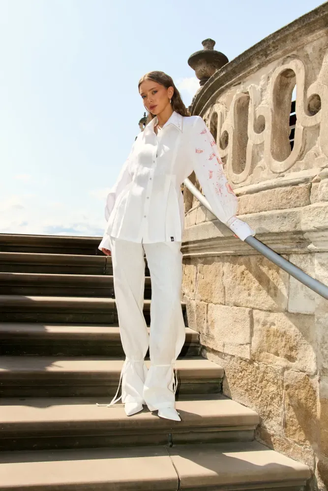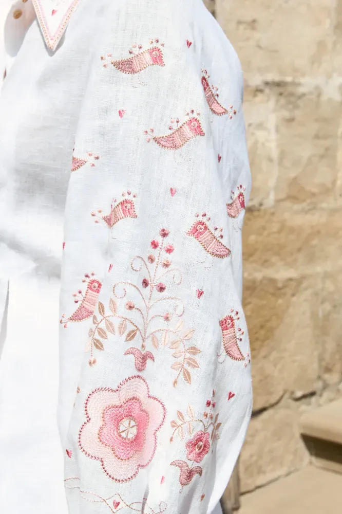 Сорочка оздоблена орнаментом 30-х років ХХ століття. Джерело натхнення – вишиванка з приватного музею бренду SVARGA. Вона походить із селища Гребінка, що на Полтавщині.