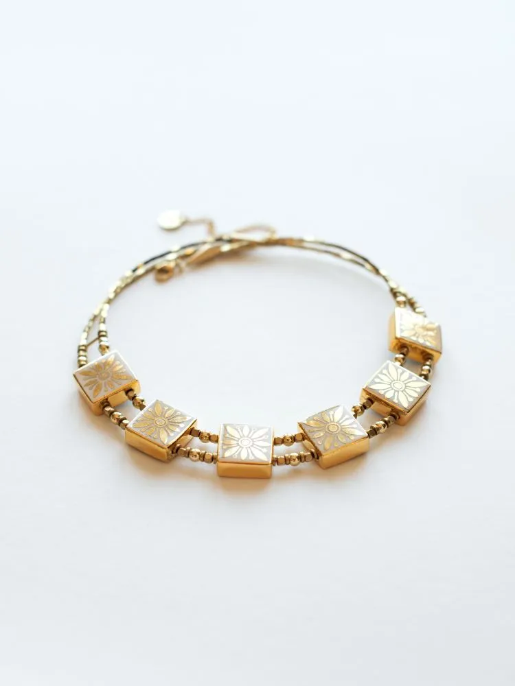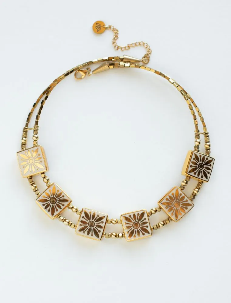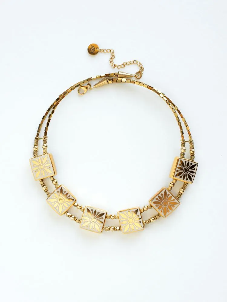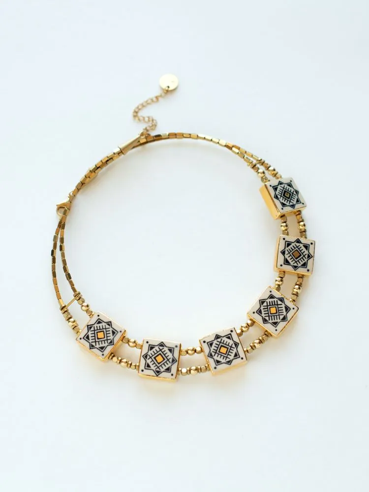 Лаконічний, але глибокий за змістом. Цей чокер побудований на ритмі квадратних керамічних намистин із восьмипроменевою зіркою — давнім символом світла, гармонії та захисту.
