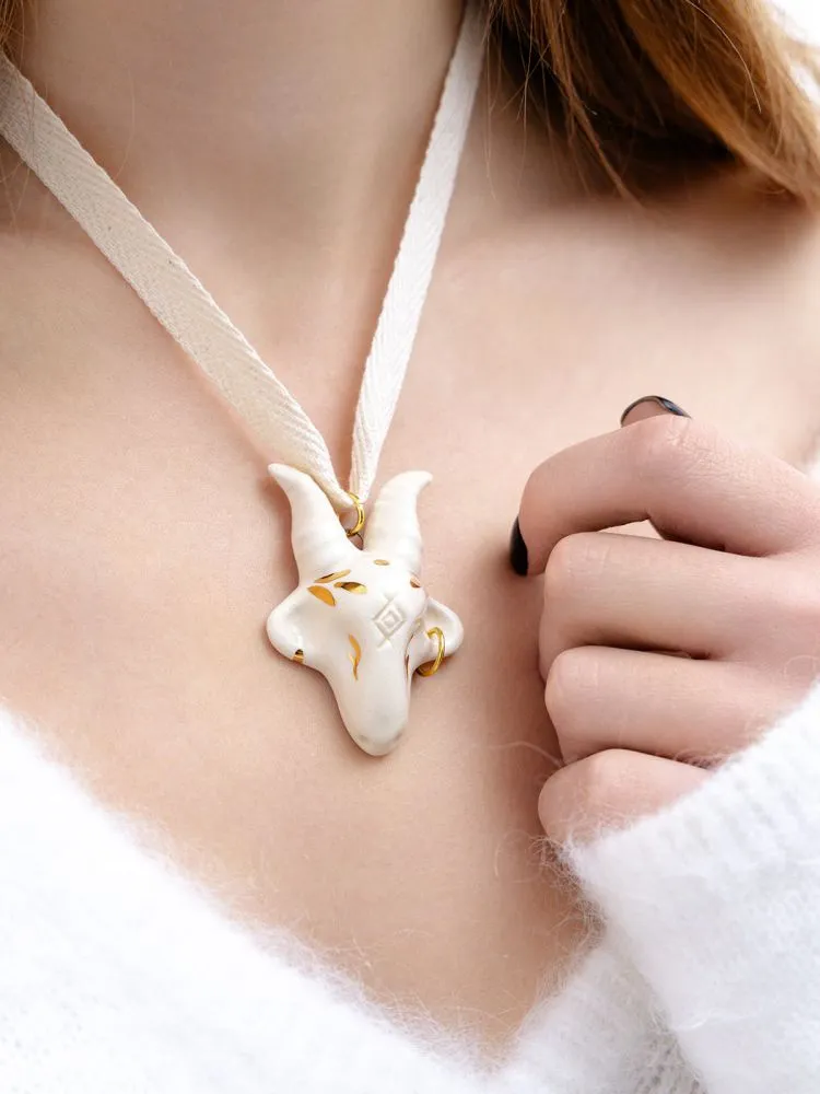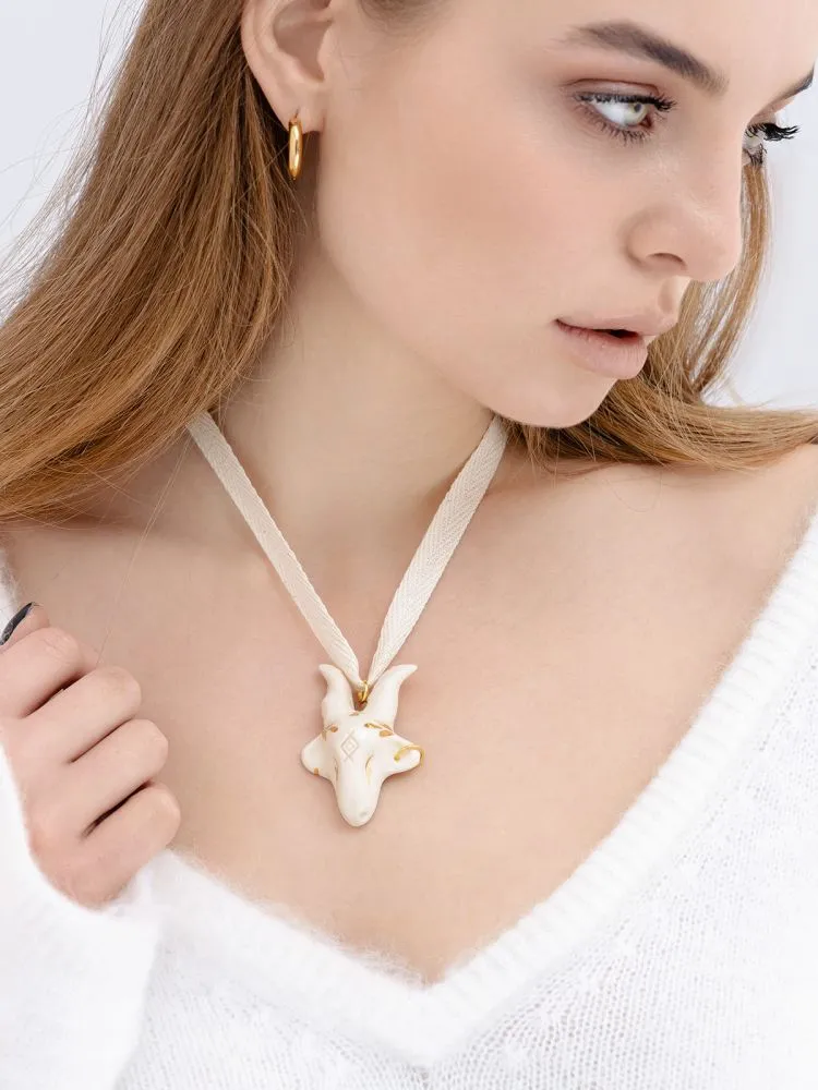 Глазурована прозорою поливою керамічна підвіска Кізонька зберігає природний молочний колір глини та має глянцевий відблиск.