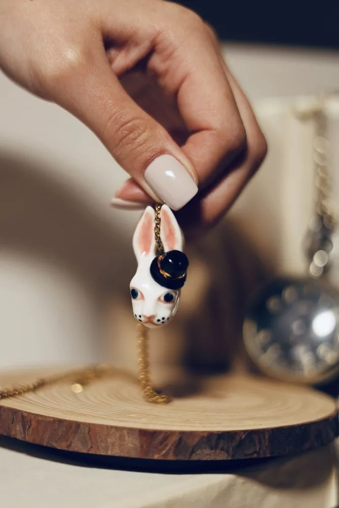 Це підвіска у формі голови Білого Кролика — персонажа, який завжди поспішає, але саме він відкриває двері у диво.
