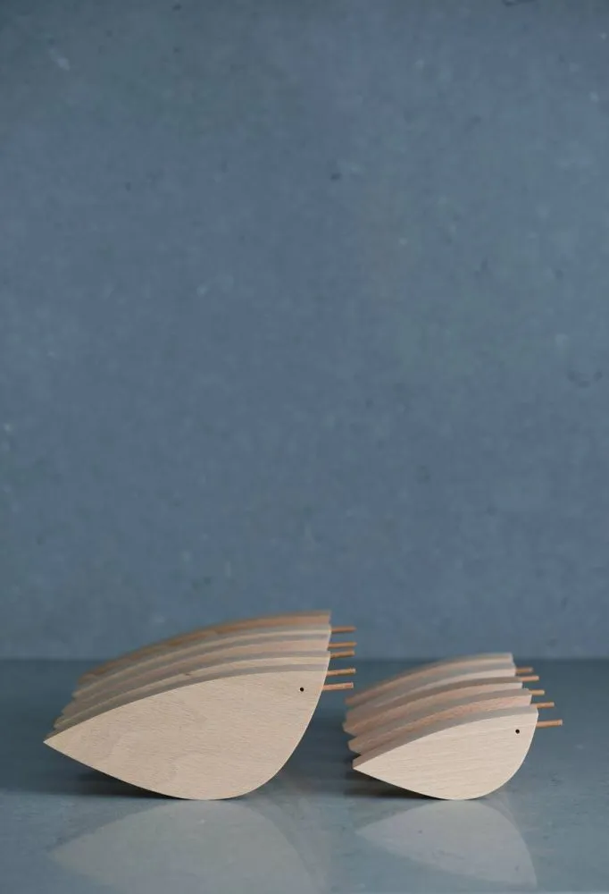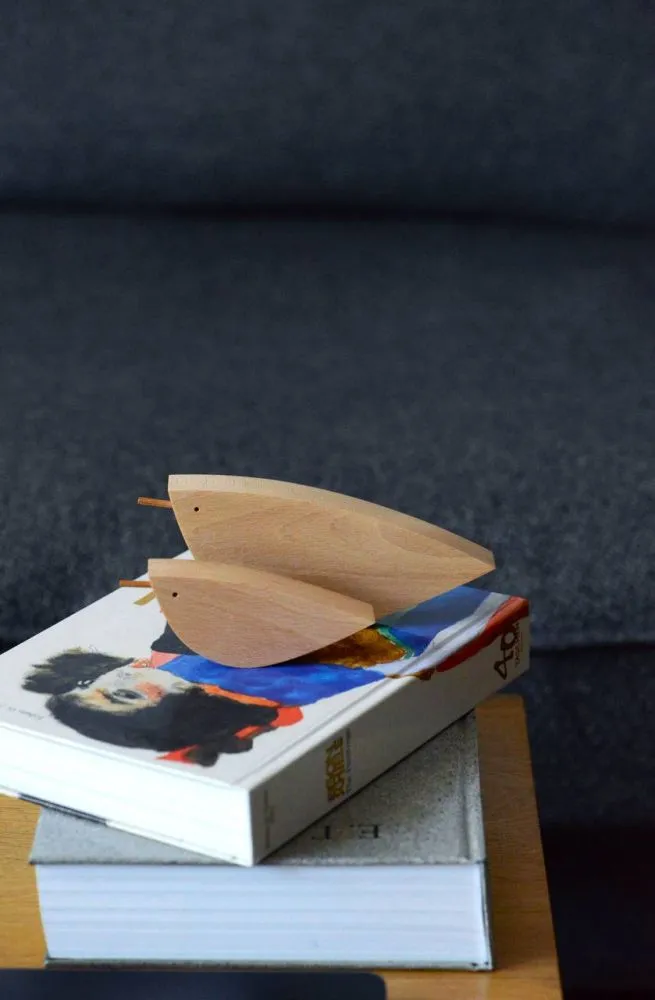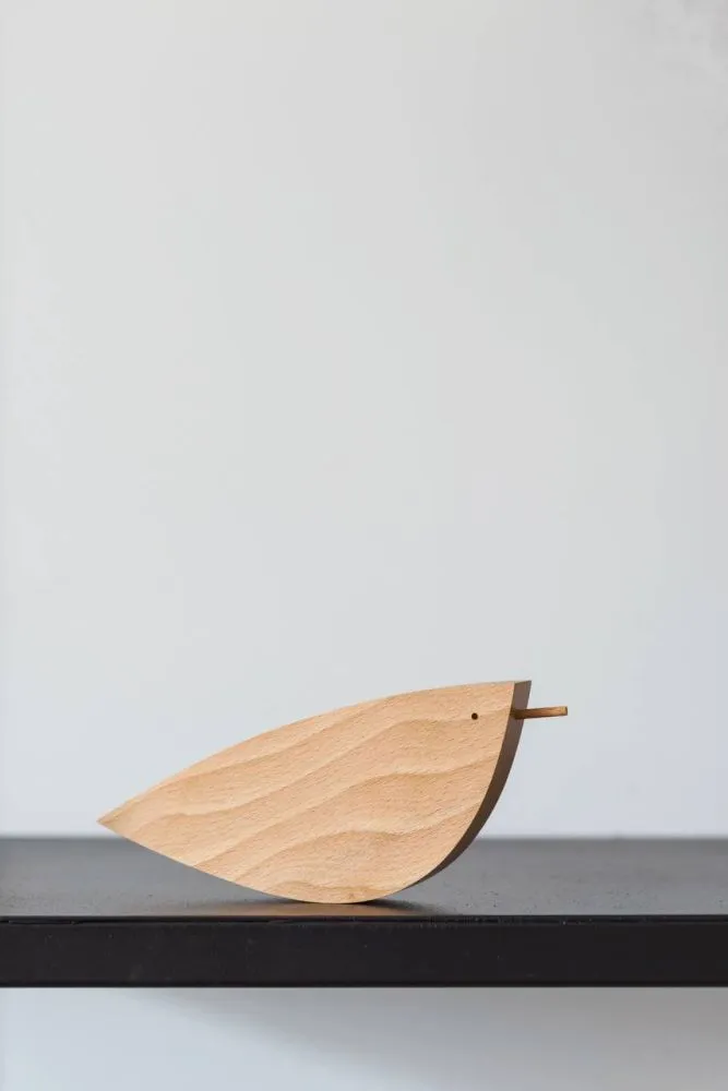 Предмет для декорування та стилізації інтерʼєру та для гри. Простота, мінімалізм і абстрактна стилізація поєднані в дизайні пташки. Теплота дерева і приємна полірована поверхня предмету створює особливо затишний ефект в атмосфері простору.