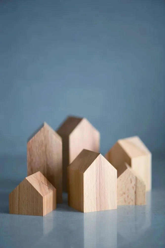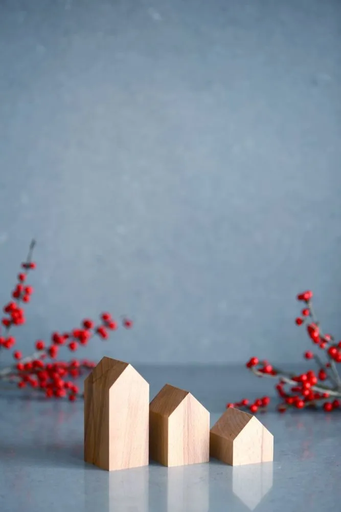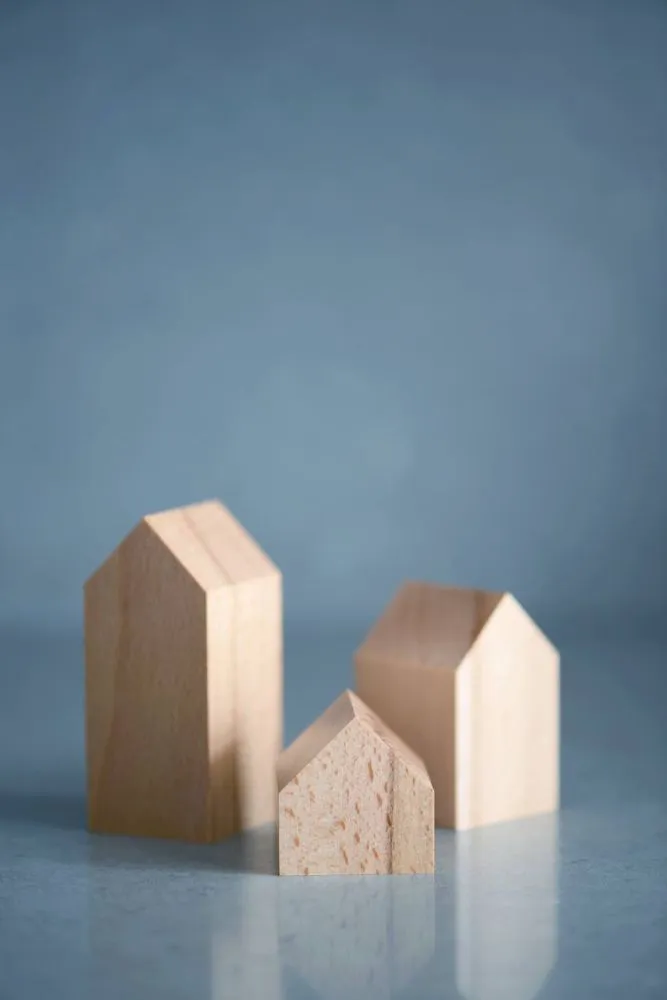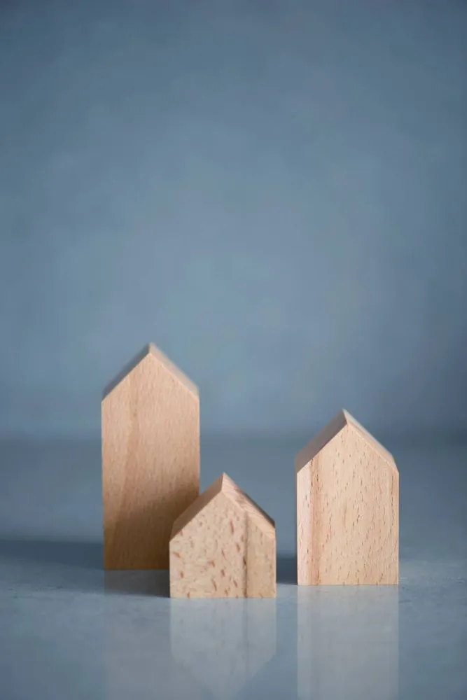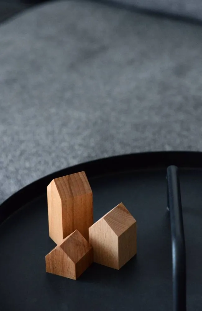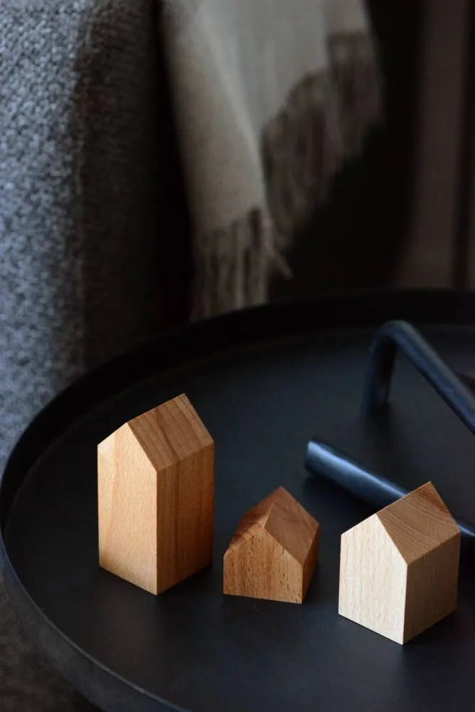 Комплект деревʼяних будиночків з 3-х штук. Невеликий декор для декорування інтерʼєру в мінімалістичному скандинавському стилі.