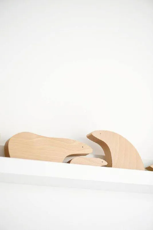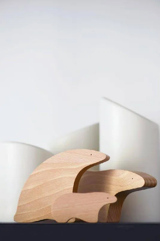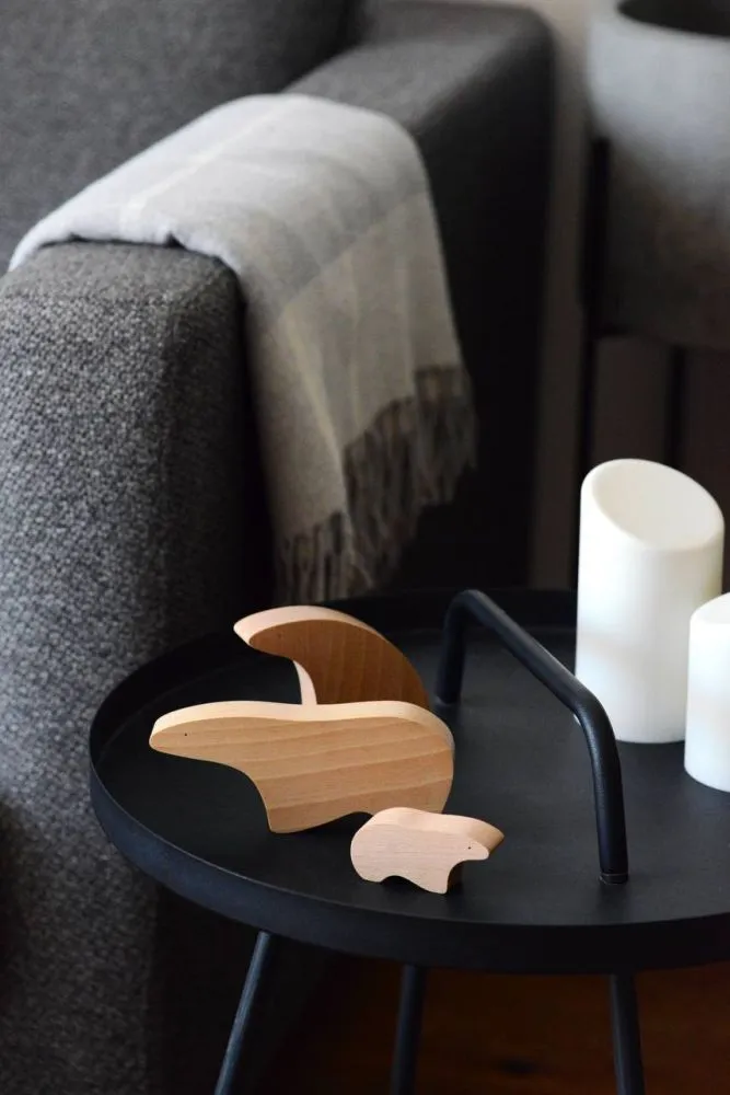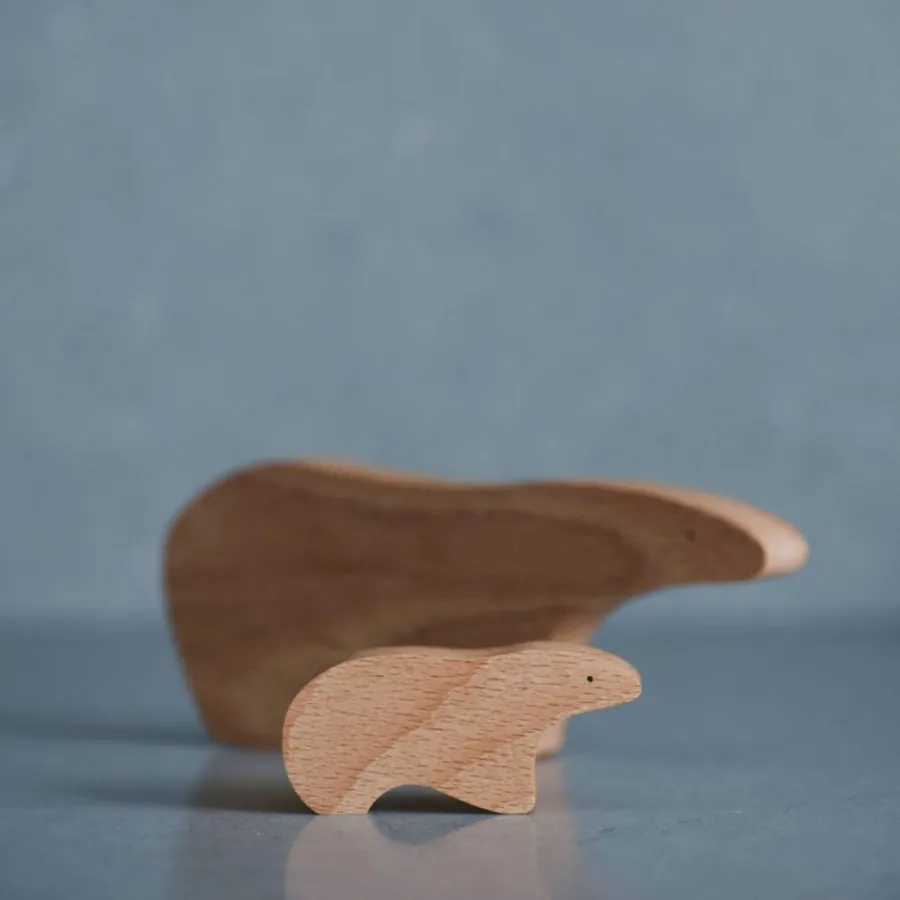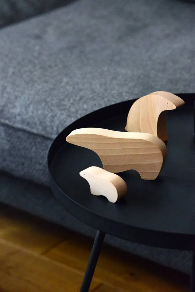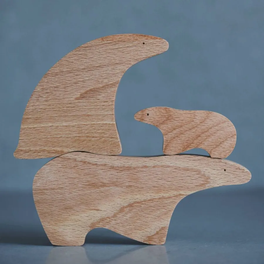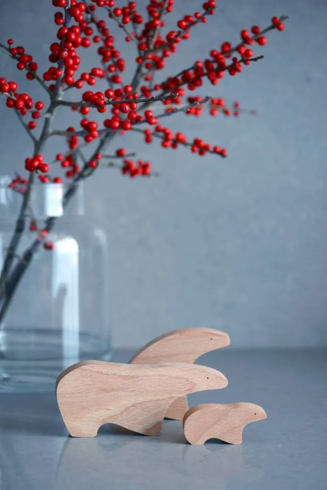 Крафтові деревʼяні фігурки ведмедів, набір з 3-х предметів. Дизайн натхненний природою і фауною Арктики, поєднює в предметах плавність форм, мінімалізм та емоційність.