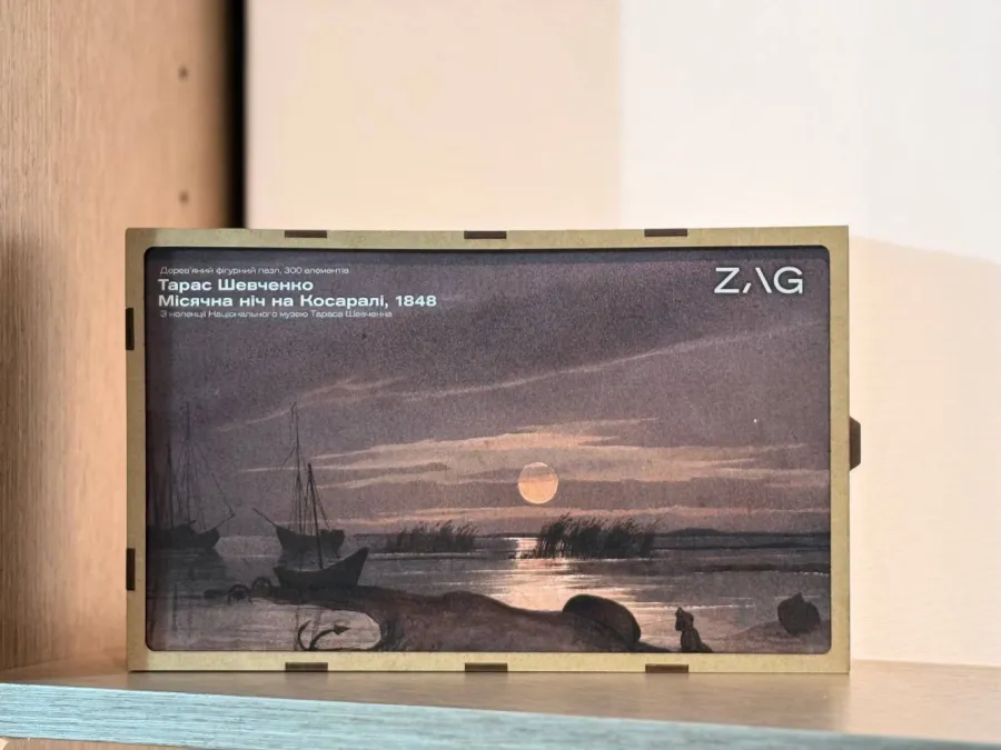 Дерев'яний фігурний пазл "Місячна ніч на Косаралі. Тарас Шевченко" 300 ел.
