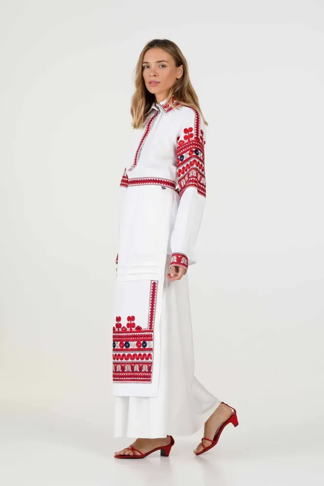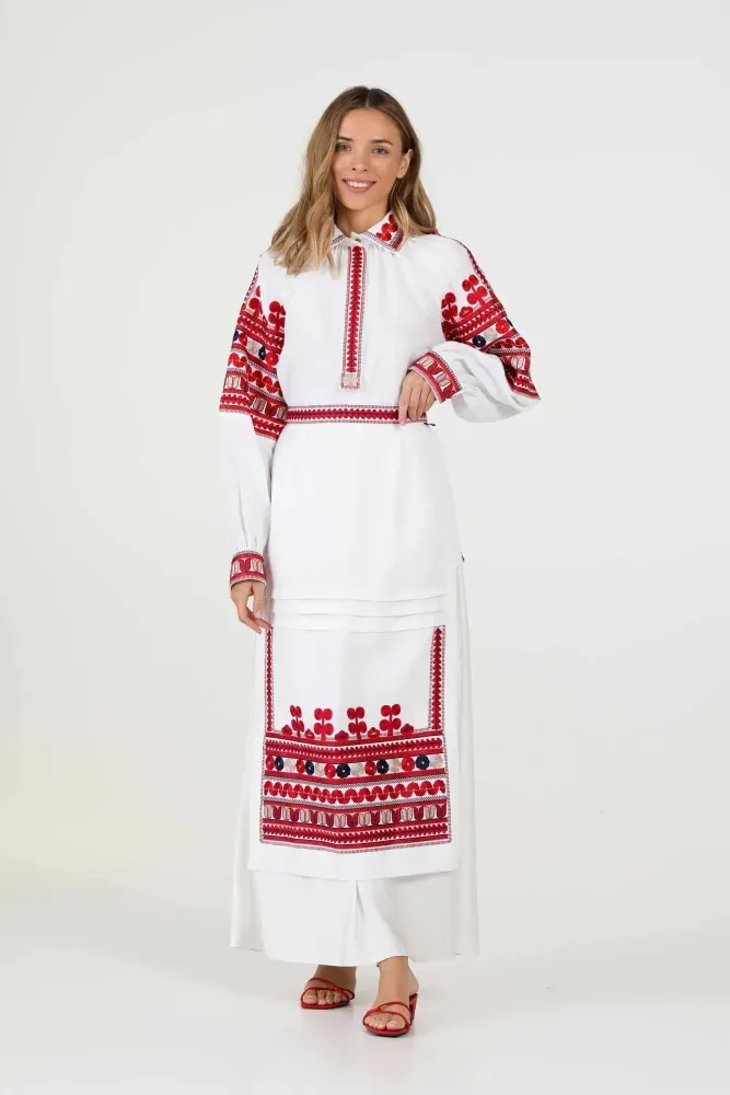 Ручні техніки вишиття “місячки”, “драбинка”, “вужик”, “змійка”, “під шнурком”, “напівмісячки”, “купочки”, “зубцювання петлями” відтворено машинною вишивкою.