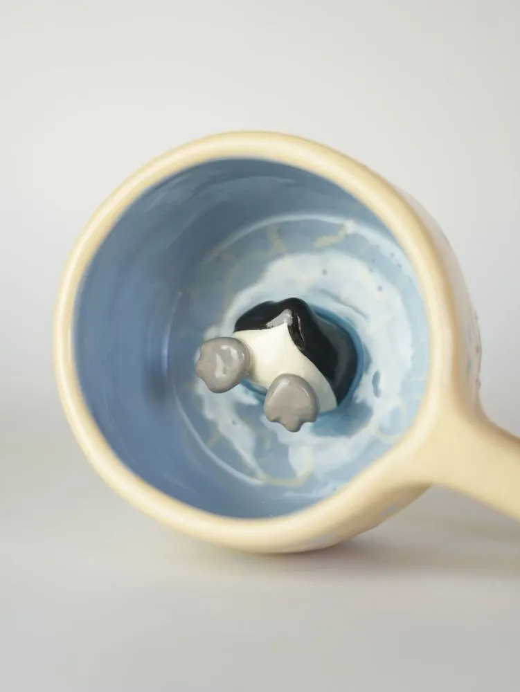Пінгвін затишно сховався під крижаною ковдрою, ніби чекає, поки ти подаруєш йому тепло свого напою. Це горнятко — про контрасти: холод зовні, тепло всередині і тугу за домашнім затишком, що завжди поруч.