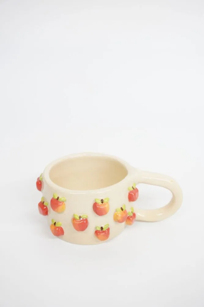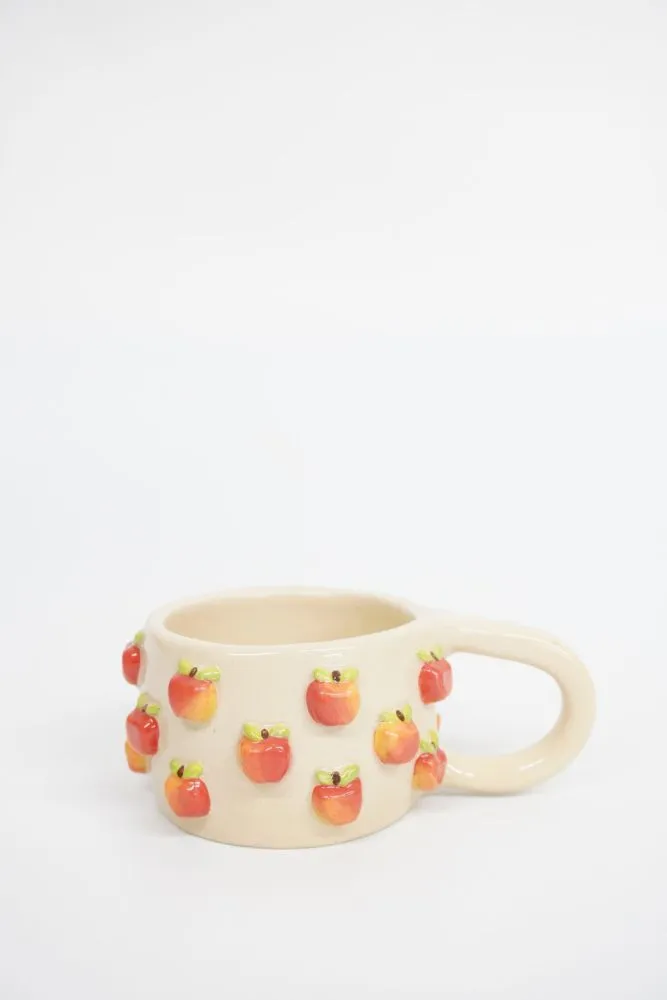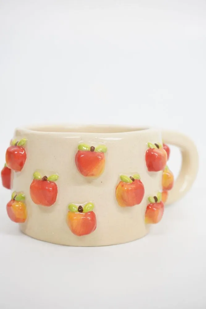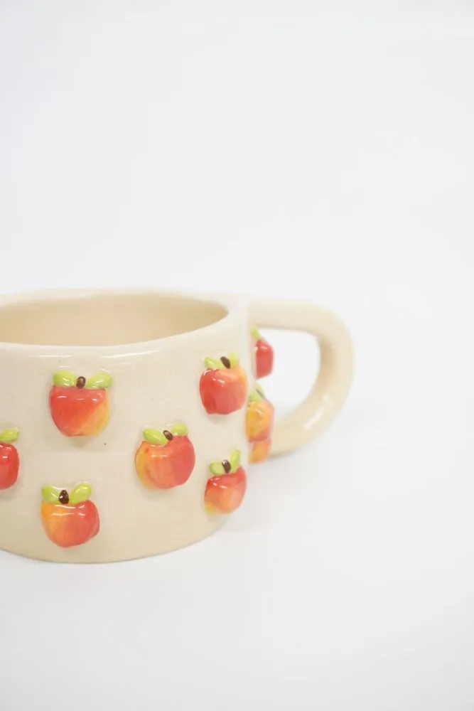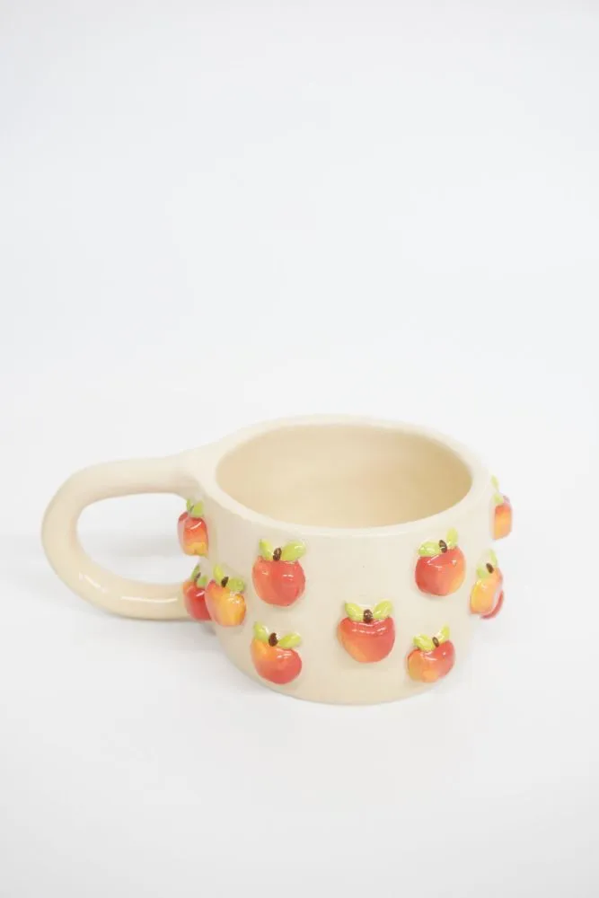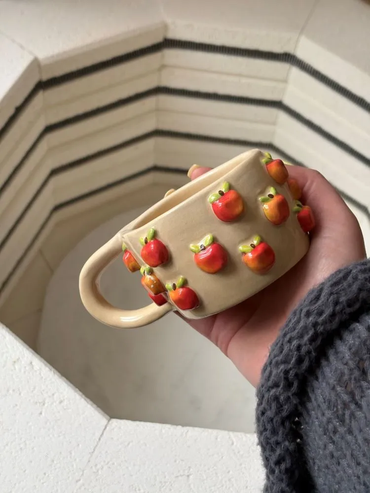 Кожне яблучко ліпиться та розписується вручну, з увагою до кольору й деталей, тому кожне горнятко виглядає живим і особливим.