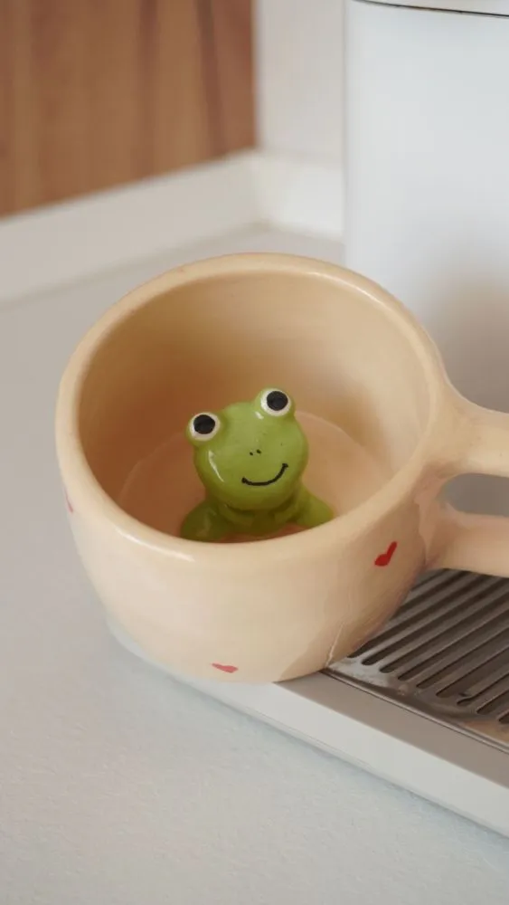 Це керамічне горнятко з маленьким замріяним жабеням всередині створене для повільних моментів, коли хочеться просто посидіти й помріяти.