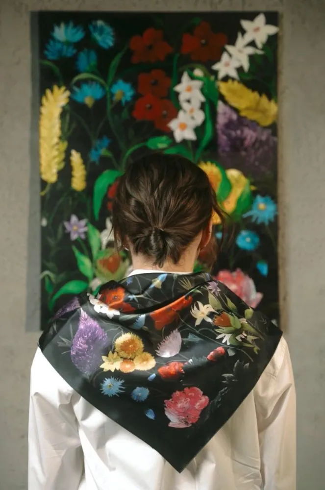 Перший інклюзивний бренд в Україні — Lady Di Atelier у співпраці з Національним реабілітаційним центром UNBROKEN презентує унікальну хустку «Квітуча темрява».Ця робота базується на картині волонтерки Вікторії Торбич, яка проходила психологічну реабілітацію в Центрі UNBROKEN. Під час творчих занять вона відкрила в собі талант до мистецтва.