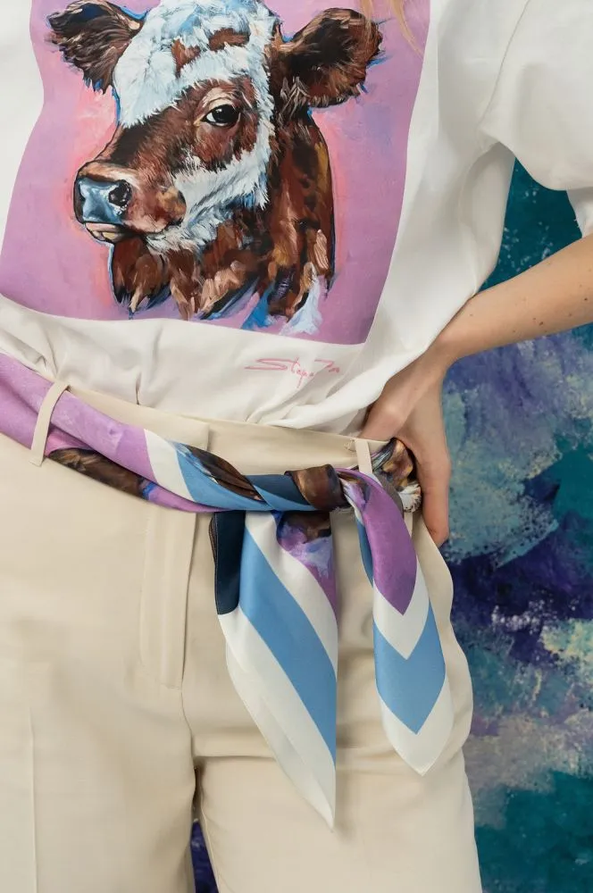 У нашій культурі корова здавна була майже членом родини — символом добробуту, родючості та материнської турботи. У роботі Ігоря Степаника «Рожева любов» цей образ постає ніжним і врівноваженим, як уособлення стабільності та внутрішнього спокою.