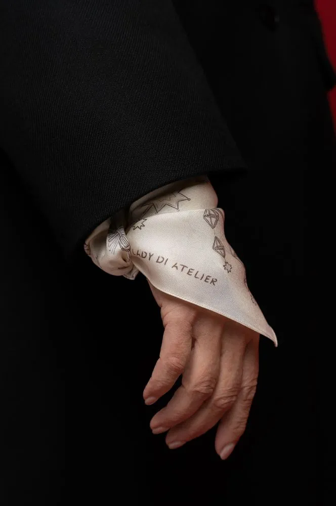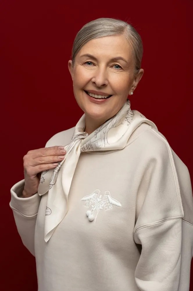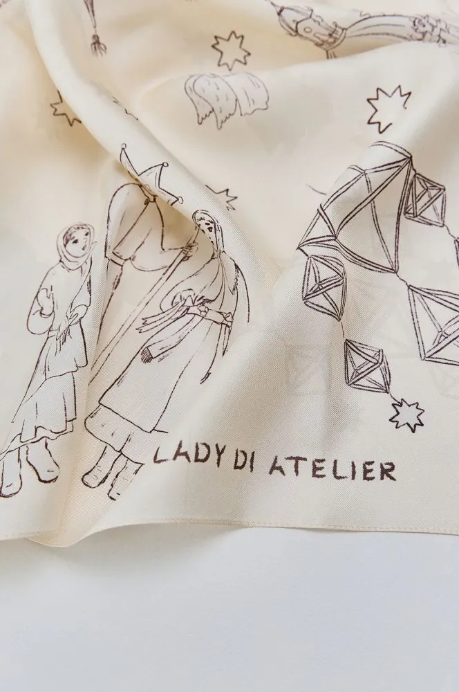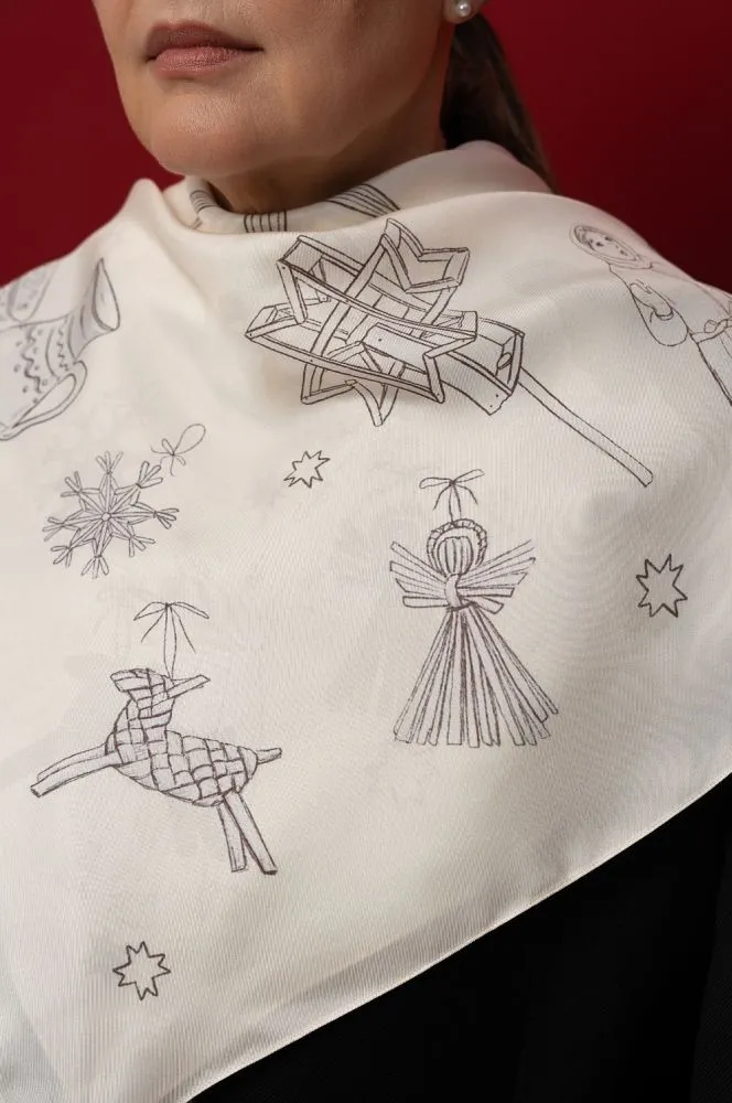 Виконана з натурального шовку, хустина “Різдвяна радість” — це не просто аксесуар, а голос українців серед святкової метушні світу.