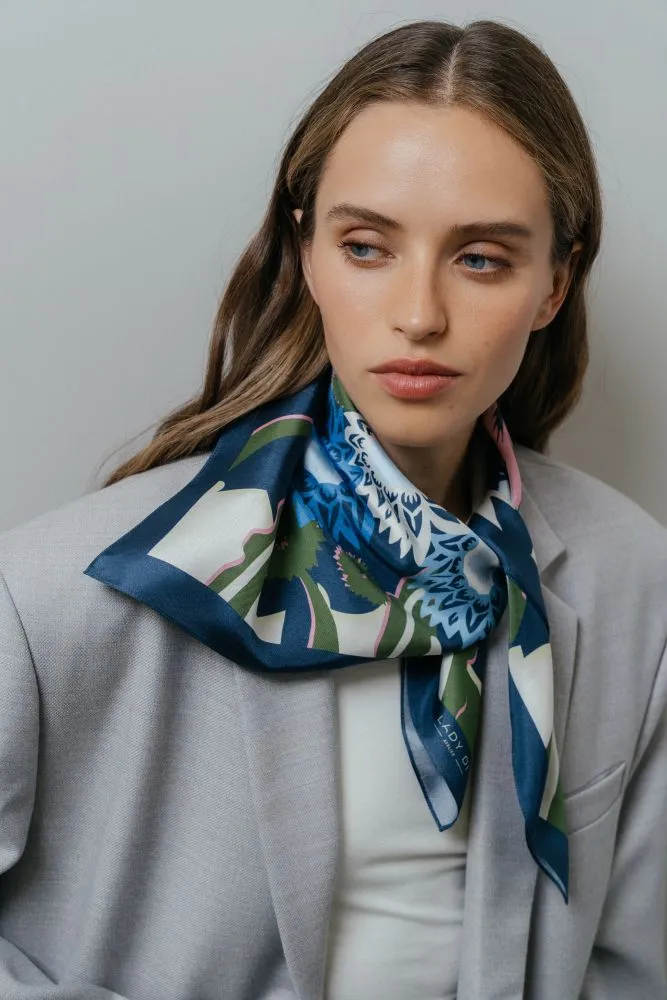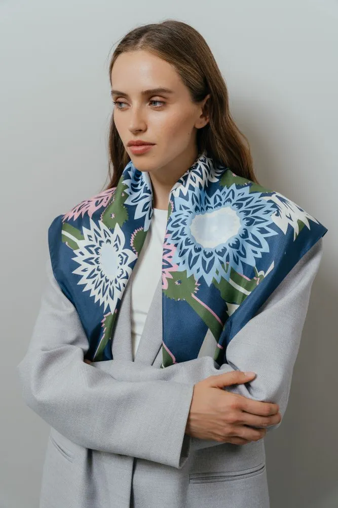 Виконана зі штучного шовку преміум-класу, ця хустина поєднує святковість і витонченість“Соняхи” нагадує: ми можемо квітнути в будь-який час і в будь-яких проявах, адже кожен із нас має власні барви й грані.