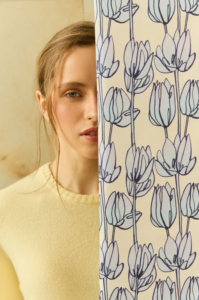 Кожна лінія — мов подих вітру між пелюстками, а м’яка текстура шовку огортає легкістю весняного ранку.