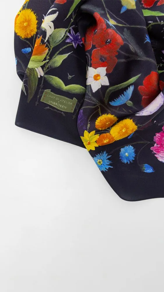 Перший інклюзивний бренд в Україні — Lady Di Atelier у співпраці з Національним реабілітаційним центром UNBROKEN презентує унікальну хустку «Квітуча темрява».Ця робота базується на картині волонтерки Вікторії Торбич, яка проходила психологічну реабілітацію в Центрі UNBROKEN. Під час творчих занять вона відкрила в собі талант до мистецтва.