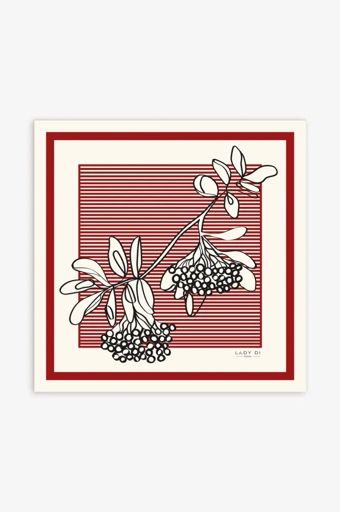 Горобина — символ України, що уособлює життя, відродження, силу ідентифікації та памʼять спадщини. “Це особлива робота, бо вона наповнена моїм внутрішнім переживаннями, як українки, яка живе у війні”, — ділиться Вікторія, авторка хустини. Пропрацьовано кожну деталь, лінію та листочок, у сукупності, які утворюють символічну роботу.