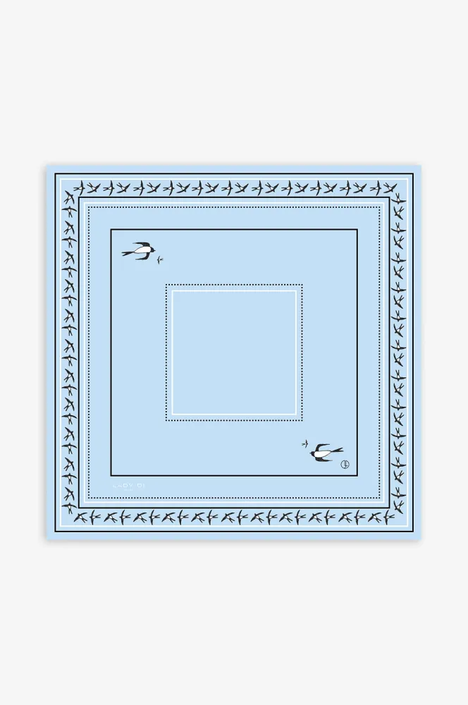 “Я дуже люблю тварин а особливо котів та часто роблю їх персонажами своїх картин,” — розповідає Матвій, автор хустини. Ластівки, які зображені на принті, символізують надію, любов та удачу. Обираючи її, ви наповнюєте свій образ гармонією, нестримною енергією та класикою, яка завжди доречна.