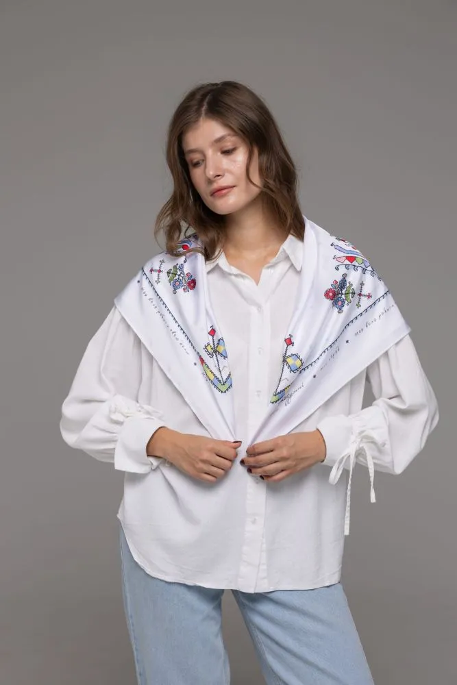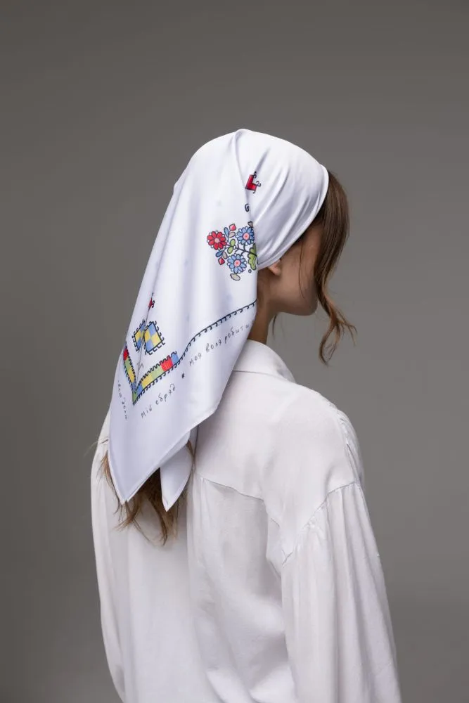 Хустка представлена у двох розмірах: S (52×52), L (82×82).