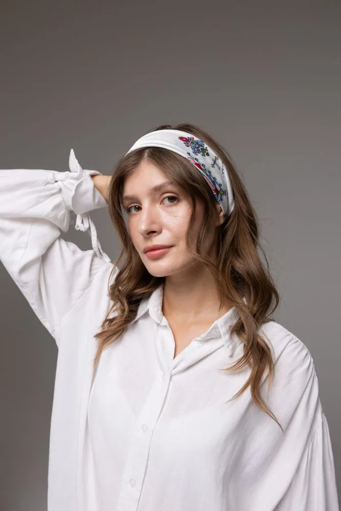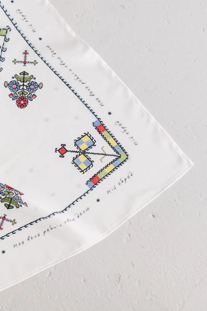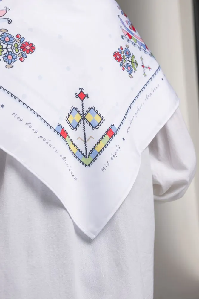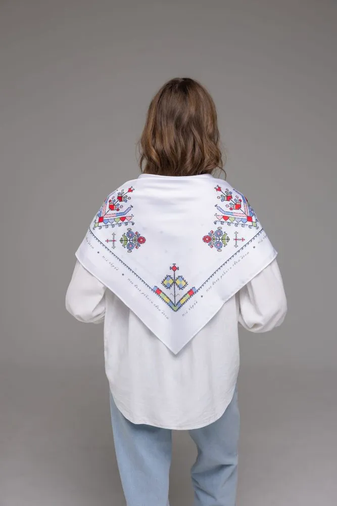 Для створення хустки “Обрядова” відтворили найпопулярніші орнаменти зі зразків, які сьогодні зберігаються в різних музеях України. Дерево життя, квіти та геометричні фігури, які вкупі завжди означали легку долю, добробут та любов.