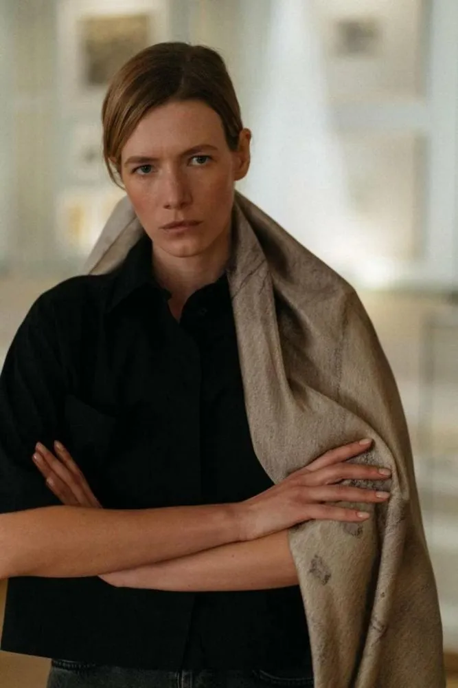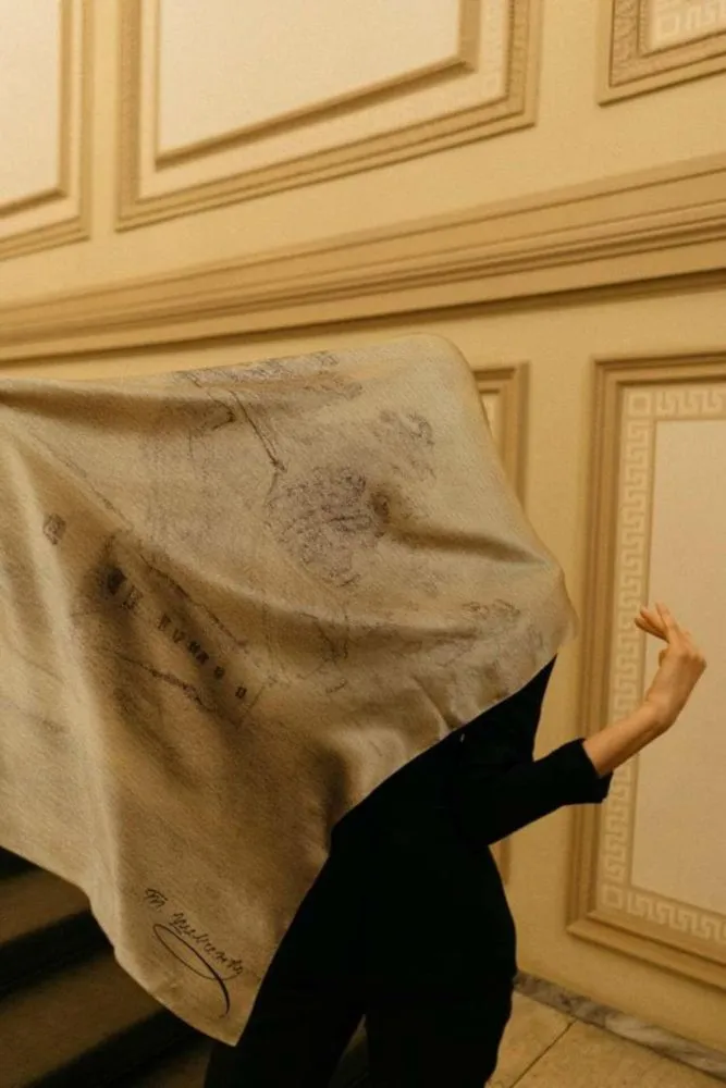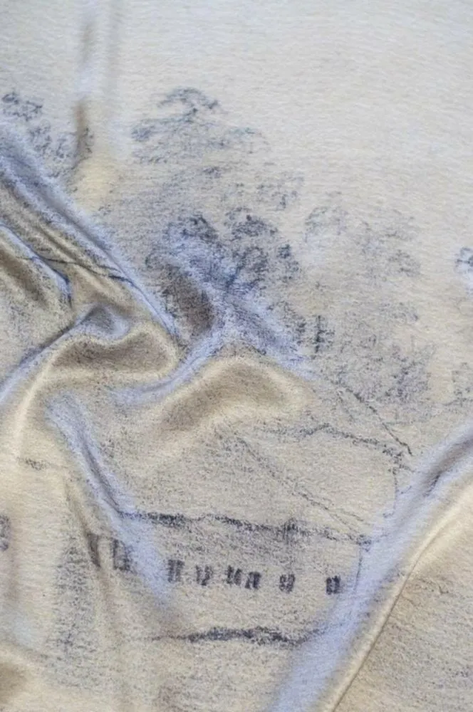 На хустці відтворено українську хату, намальовану Тарасом Шевченком під час мандрівки Україною майже 180 років тому. Як тоді, так і зараз — традиційна українська хата є місцем сили та символом рідного дому. Адже якими б світами не розкидало українців сьогодні, кожен глибоко у собі береже дім, що змушений був покинути.