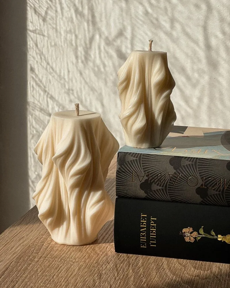 Хвиля — інтер'єрна свічка у формі морської хвилі. Виконана з соєвого воску, час горіння — 8 годин. Рекомендуємо ставити свічку на підставку чи тарілочку, бо під час горіння Хвиля естетично розтікається.