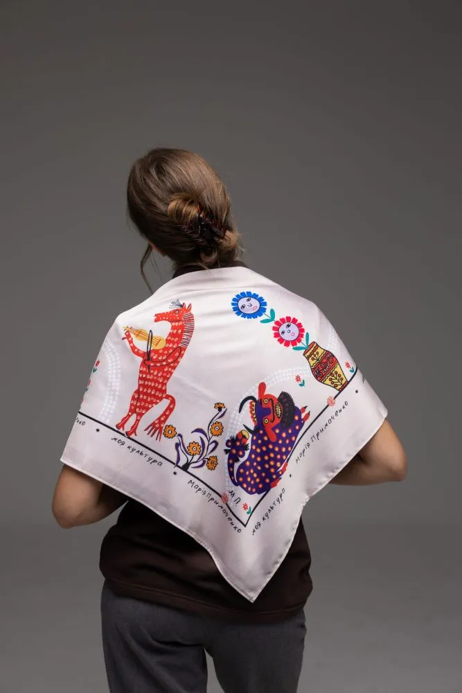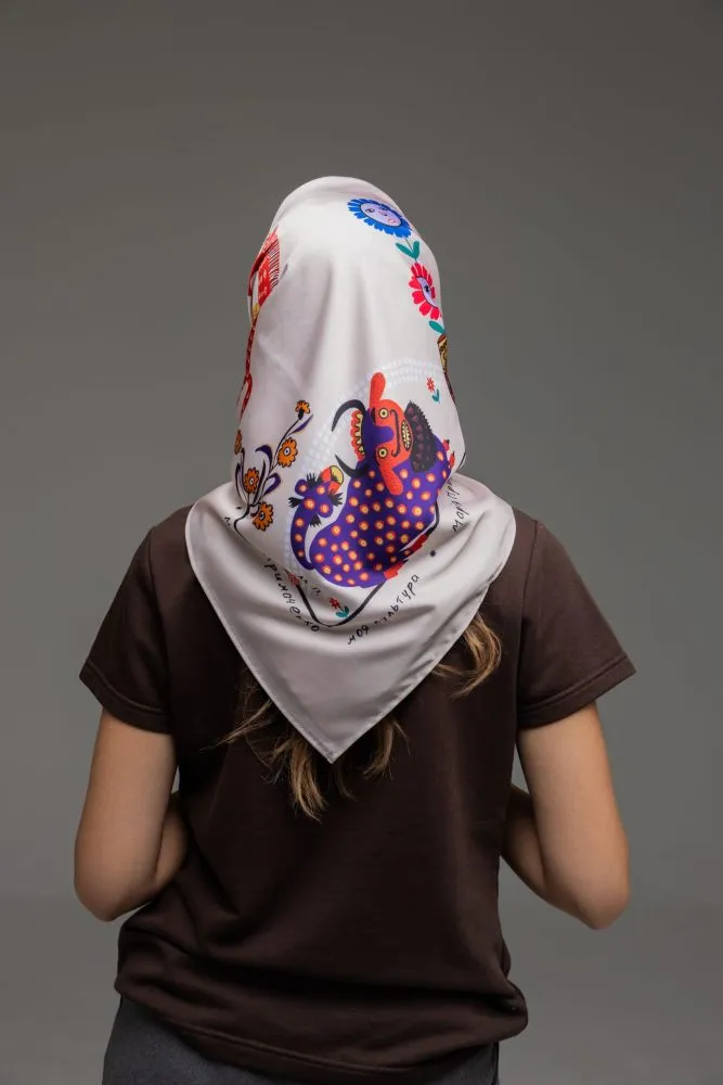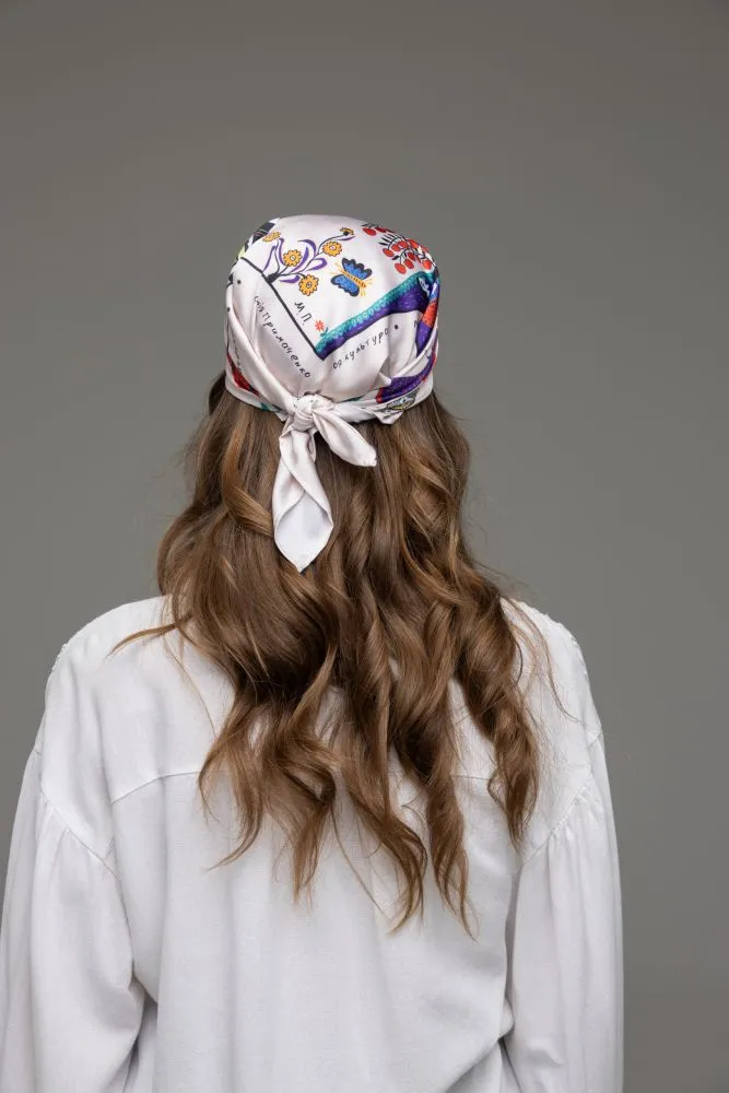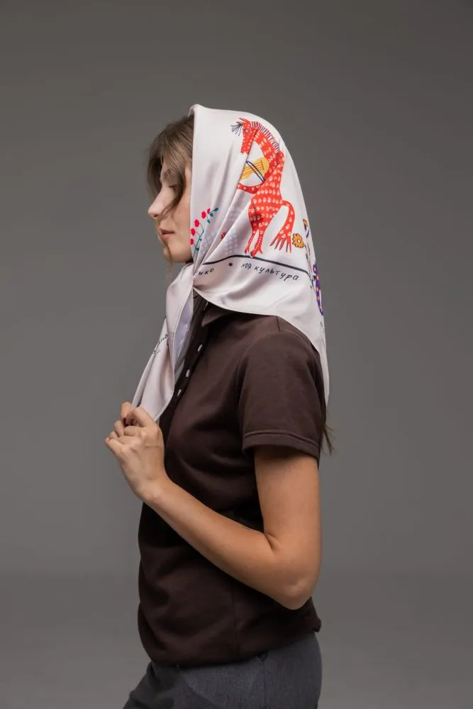 Хустка представлена у двох розмірах: S (52×52), L (82×82).
