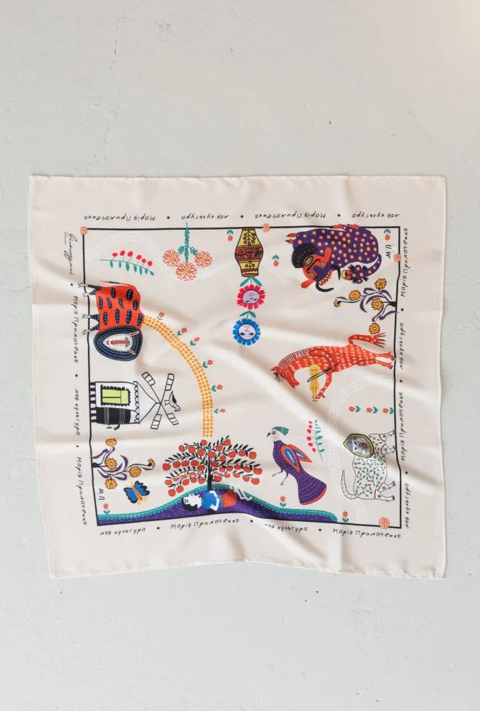 Народилася і прожила все життя художниця в селі Болотня на Київщині. Після її смерті творчий спадок перейшов її нащадкам і тепер внуки Примаченко популяризують творчість та намагаються відновити знищений музей та картини. Хустка “Історія М.Примаченко” від бренду “Не хустка” створена у співпраці з Фондом родини Примаченко «Primachenko Foundation».