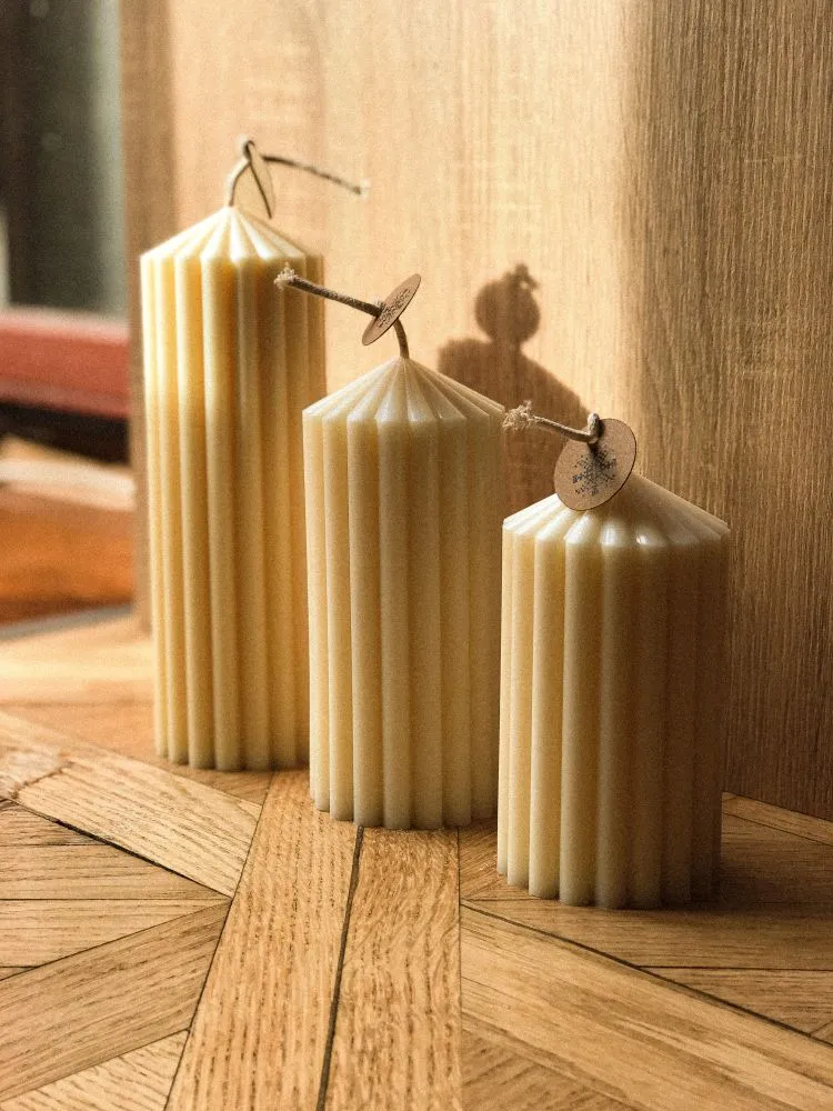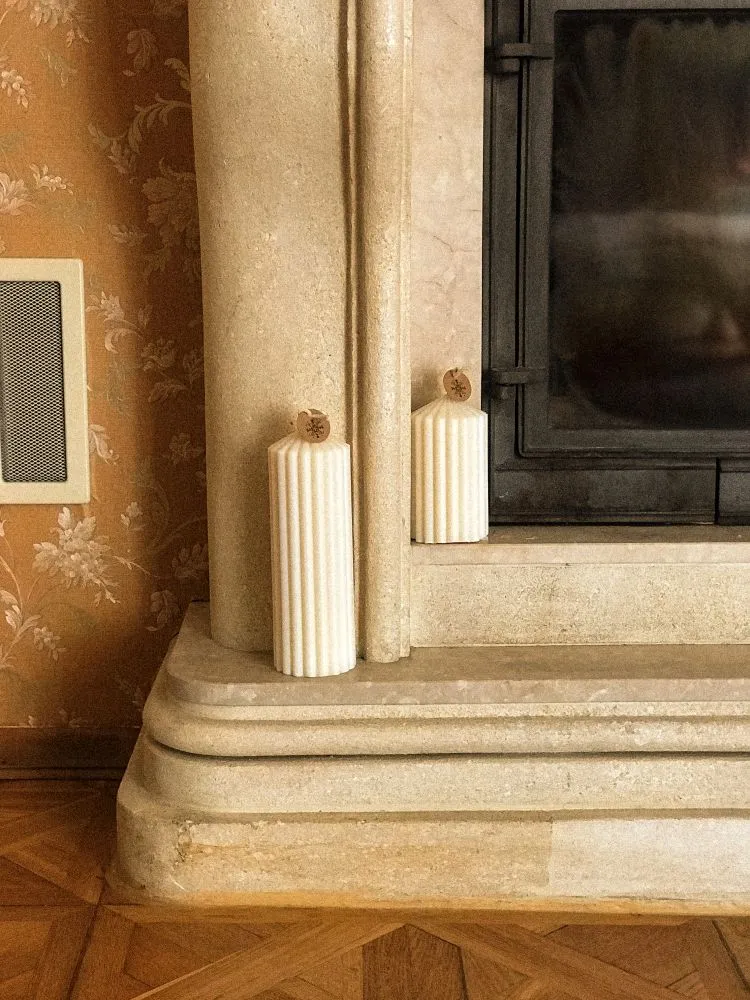 Колона — інтер'єрна свічка, що прекрасно доповнить камінну чи столову композицію. А також, завдяки своїй висоті, горітиме більше 50-ти годин і даватиме багато світла. Створена з натурального соєвого воску, тож може також естетично "стікати".