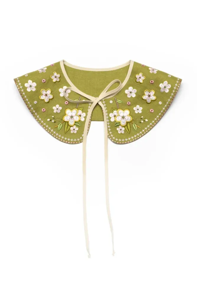 На комірці за допомогою машинної вишивки відтворено ручну техніку вишиття.