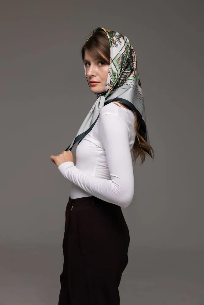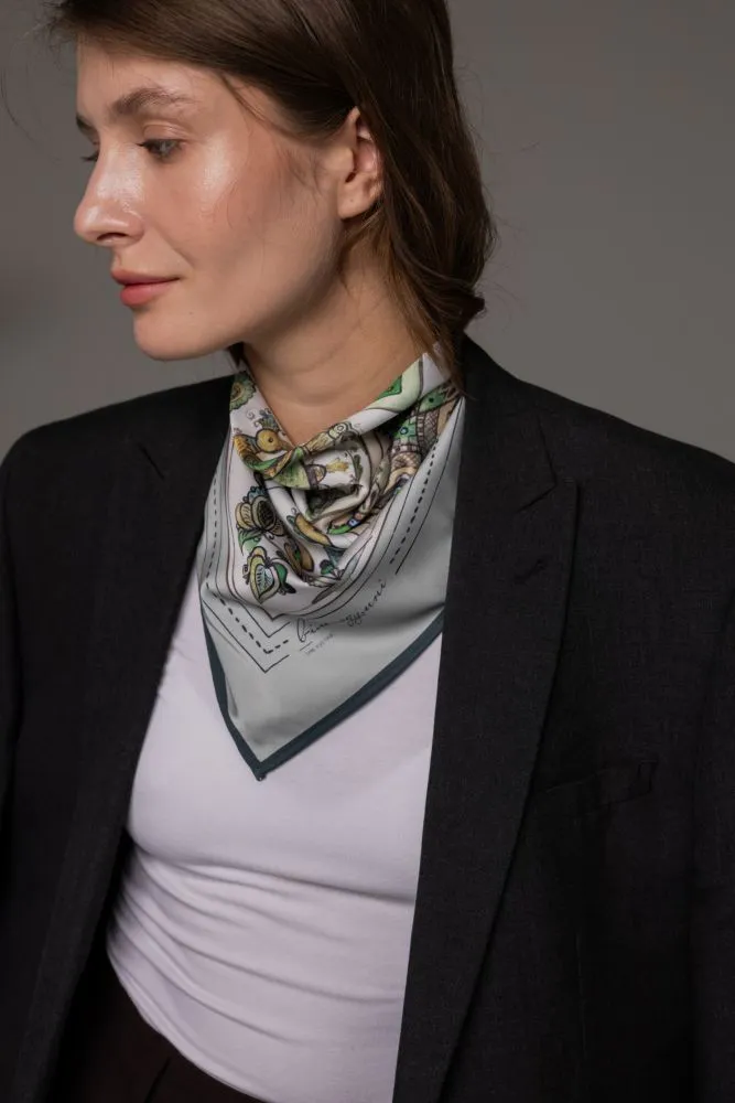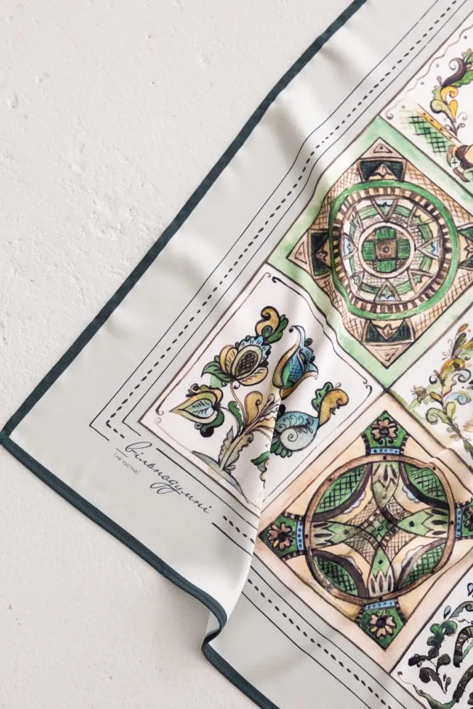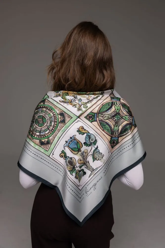 Хустка представлена у двох розмірах: S (52×52), L (82×82).