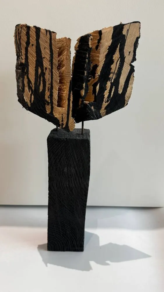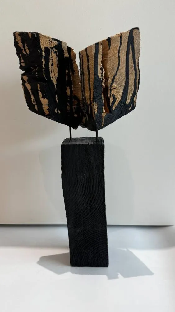 Ця квітка з серії "скалок". Коли роблю великі скульптури з дерева, завжди виходить купа скалок, які зігрівають мене своїм теплом в печі майстерні.. але поміж них трапляються особливі, такі, що рука не піднімається спалити... Вони мені "розказують" чим хочуть стати)... Ці захотіли квіткою..