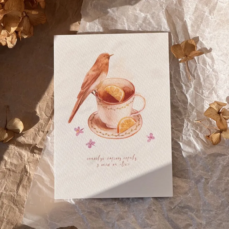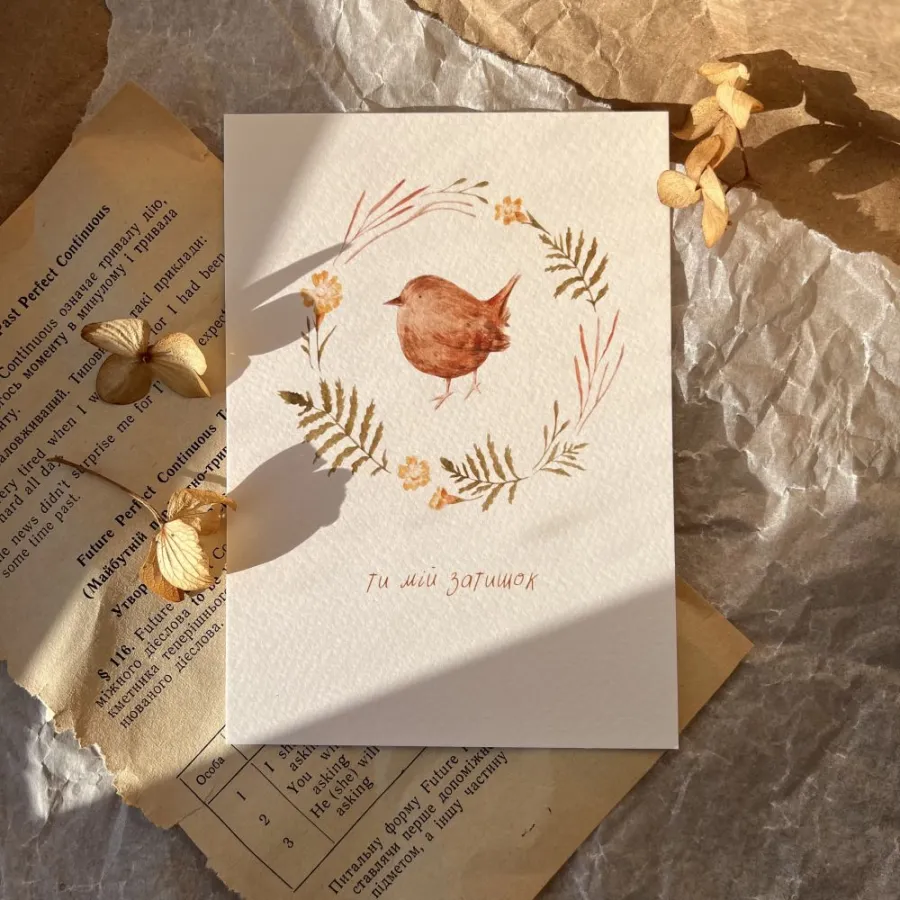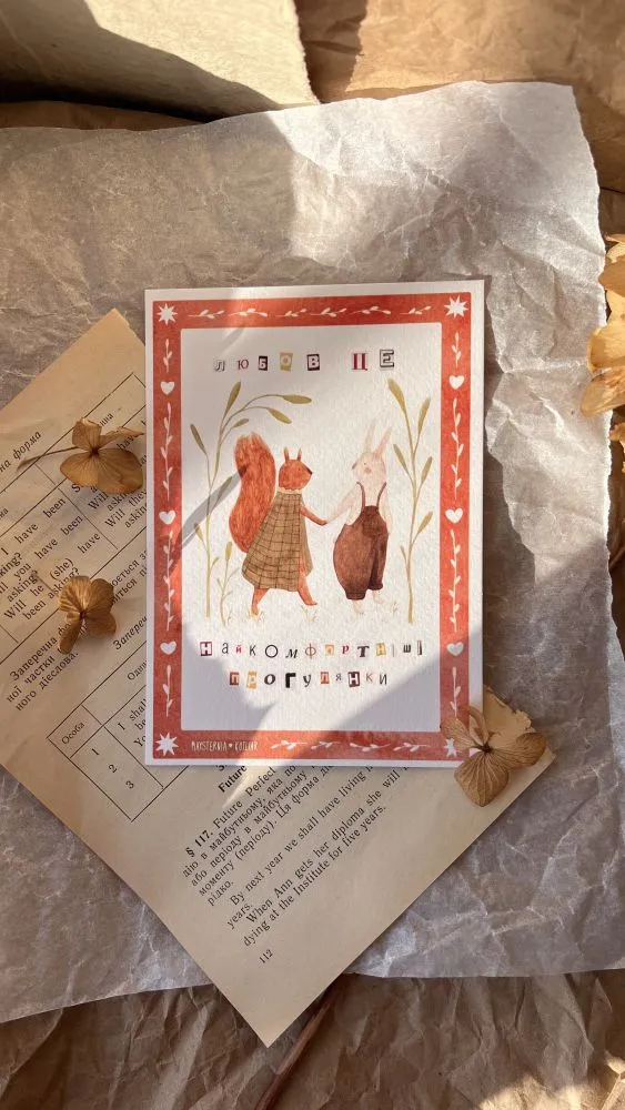 Листівка з авторською акварельною ілюстрацією, надрукована на дизайнерському картоні. У комплекті крафтовий конверт. Це не просто папір, це частинка серця.
