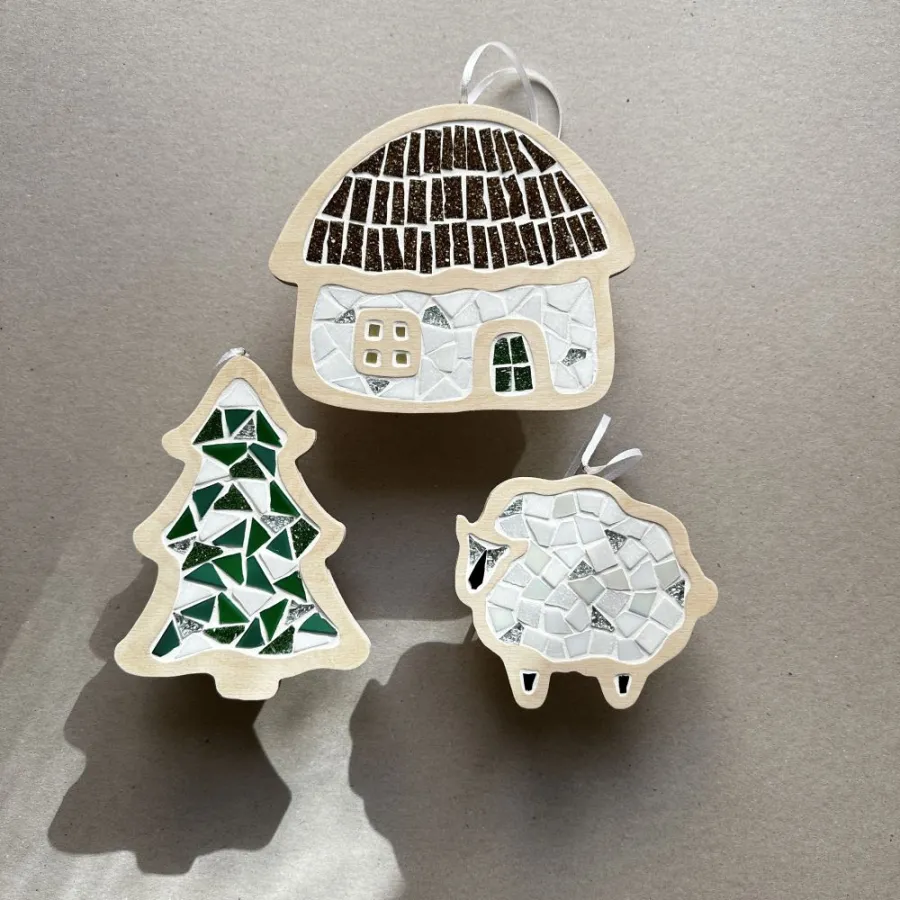 Розміри виробів: хатка 16х13х1см, ялинка 11х15х1см, вівця 11х10х1см.
