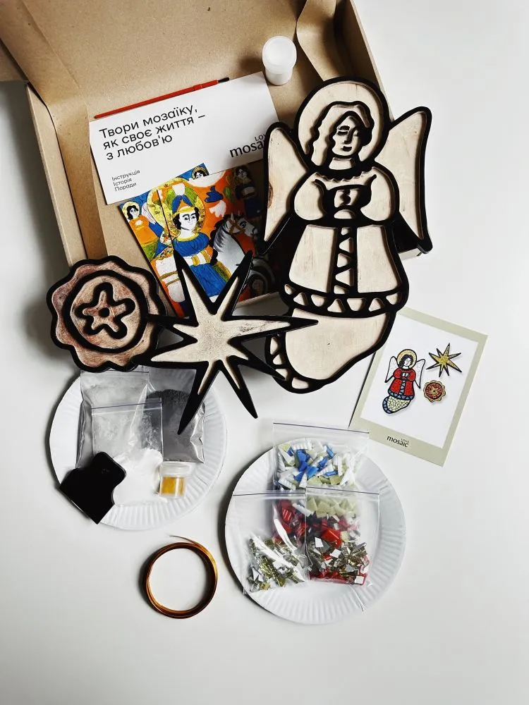 Цей набір для створення мозаїки за мотивами народних ікон на склі розробили разом із сестрами Гаєвими.