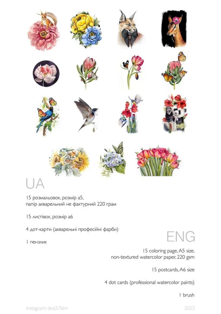15 розмальовок (а5) формат—папір акварельний не фактурний 220 грам