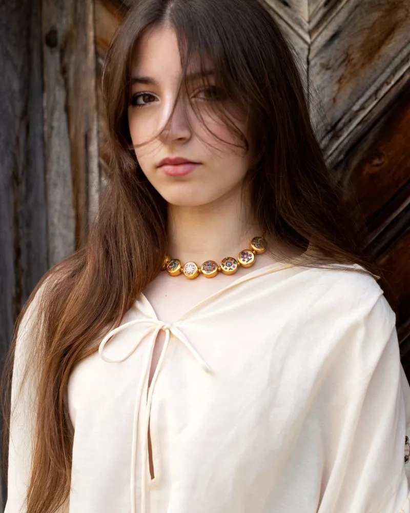 Дане намисто — це сучасне втілення колтів, стародавніх жіночих прикрас, що уособлювали красу, мудрість і захист. Давні символи переплітаються з новими формами, створюючи прикрасу, у якій минуле дихає в ритмі сьогодення.