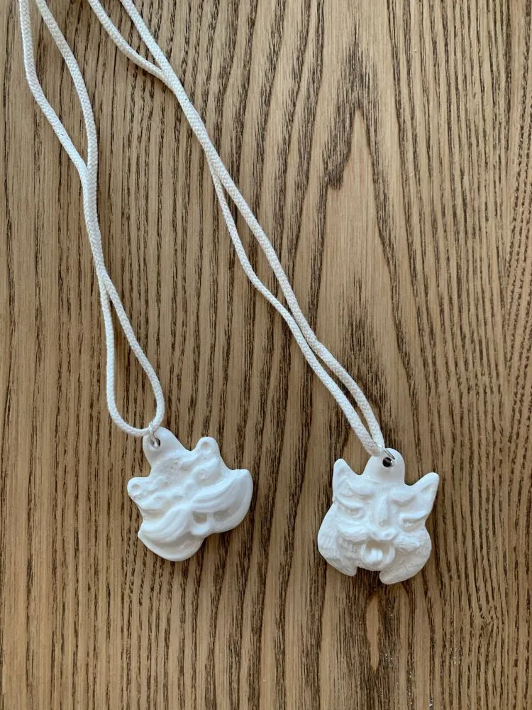 Підвіси створені з білої глини з міста Словʼянськ, розписаний кольоровими ангобами та вкриті прозорою поливою.