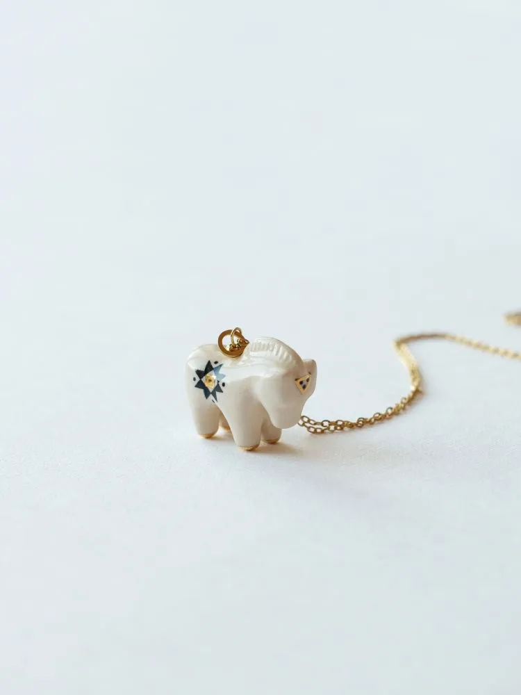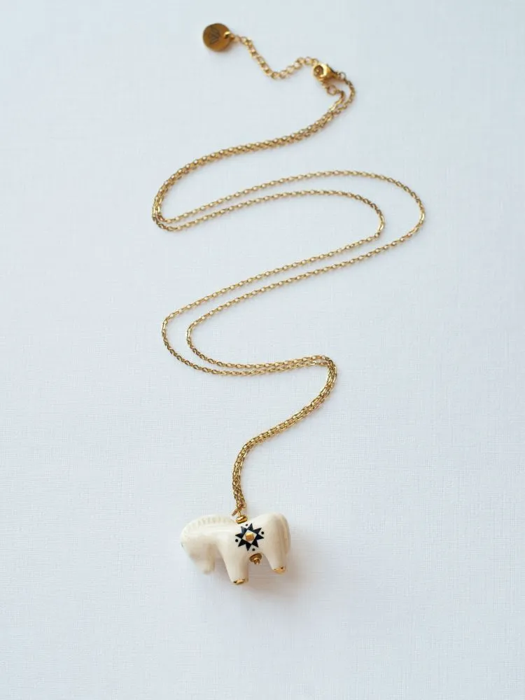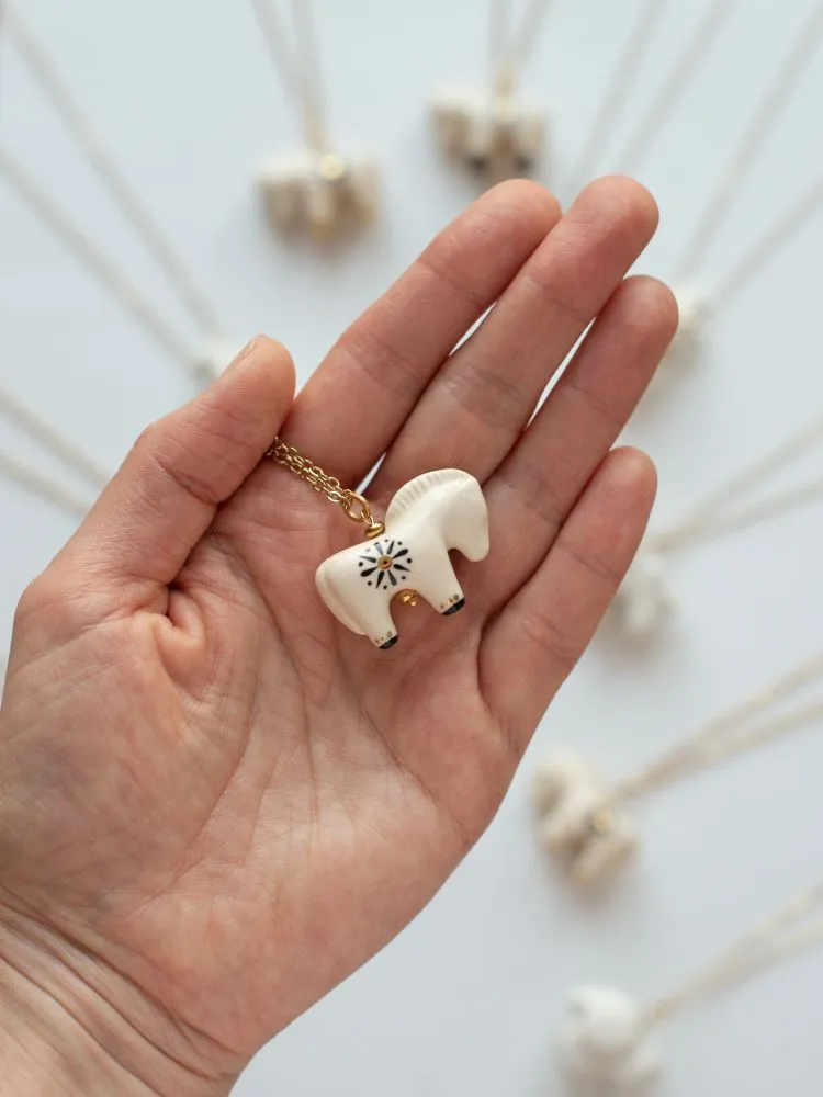 Ця підвіска — маленький оберіг, натхненний українською народною символікою. Керамічний коник — один із давніх образів у традиційному мистецтві України. У народній культурі він символізує життєву силу, рух, свободу та добру дорогу. Здавна коник вважався захисним знаком, що оберігає свого власника та приносить щастя.