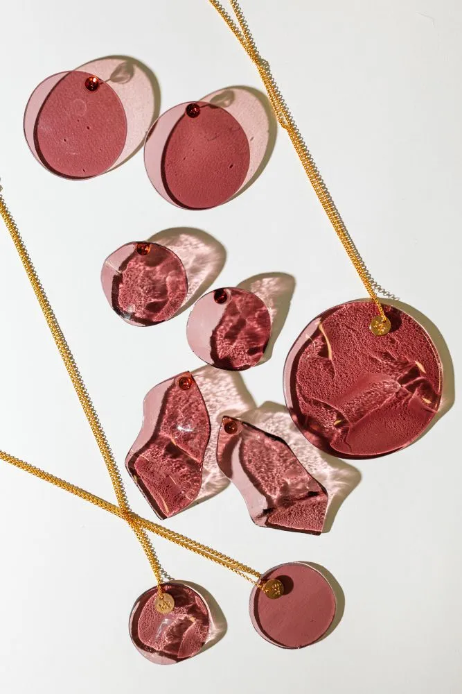 Підвіс виготовлений вручну зі скла, створений методом випікання у печі. Кожен елемент має унікальну форму та текстуру.