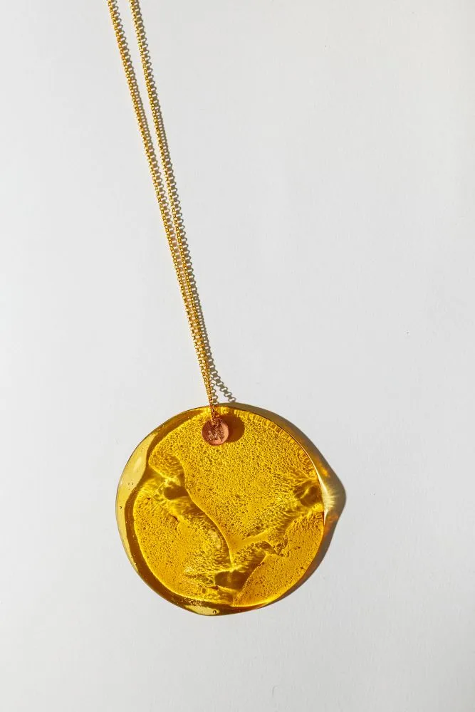 Підвіс виготовлений вручну зі скла, створений методом випікання у печі. Кожен елемент має унікальну форму та текстуру.