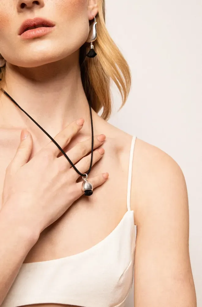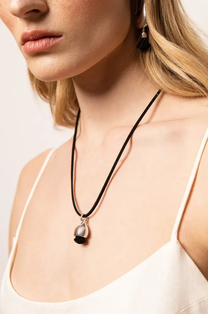 За основу для створення цієї підвіски стали образи, взяті з історичного контексту. Традиційно українки обирали прикраси із зображеннями птахів, побутових предметів, прикраси дутих форм, у формі півмісяця тощо. У виробі присутнє дизайнерське рішення від SVARGA&MARKOSOLI, а саме оздоблення срібла нитковими композиціями.