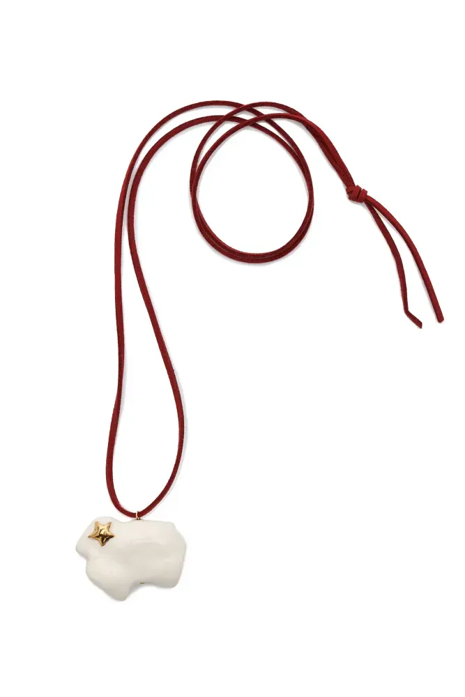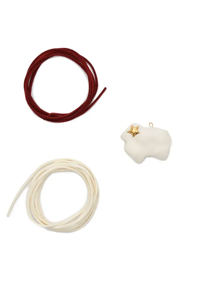 Підвіска Овечка – порцелянова прикраса ручної роботи стане гарним доповненням різдвяних образів. У комплекті додаємо дві шнурочки — бордового та молочного кольору.